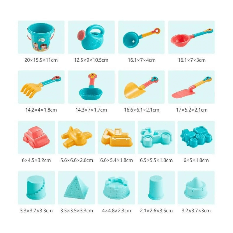 ✅ Enkel rengöring och förvaring - Våra hållbara, lättrengörda leksaker säkerställer bekymmersfria dagar på stranden, medan den medföljande förvaringshinken gör det lätt att städa undan.