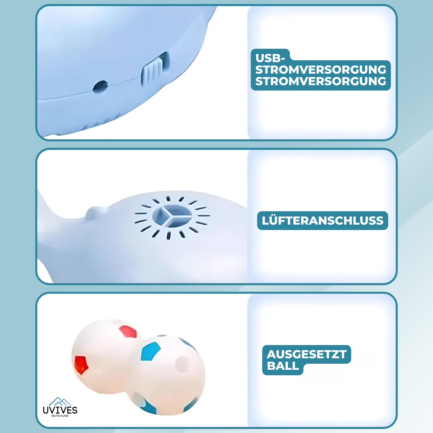 ✔️ Kyligt & underhållande samtidigt: Den inbyggda fläkten ger en frisk luftström – perfekt på varma dagar.