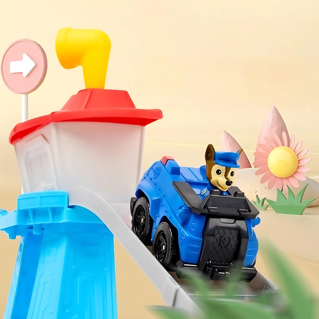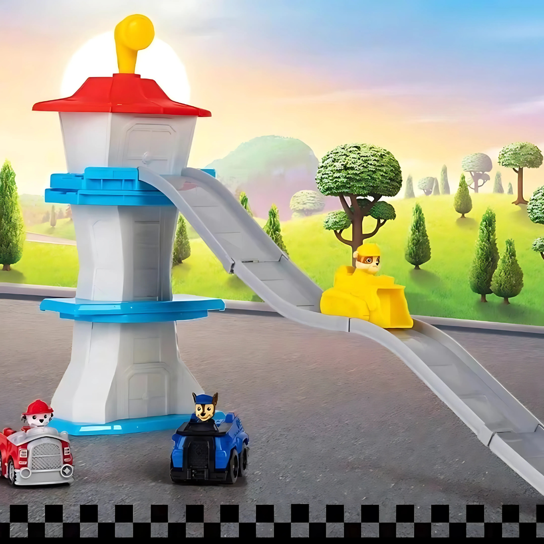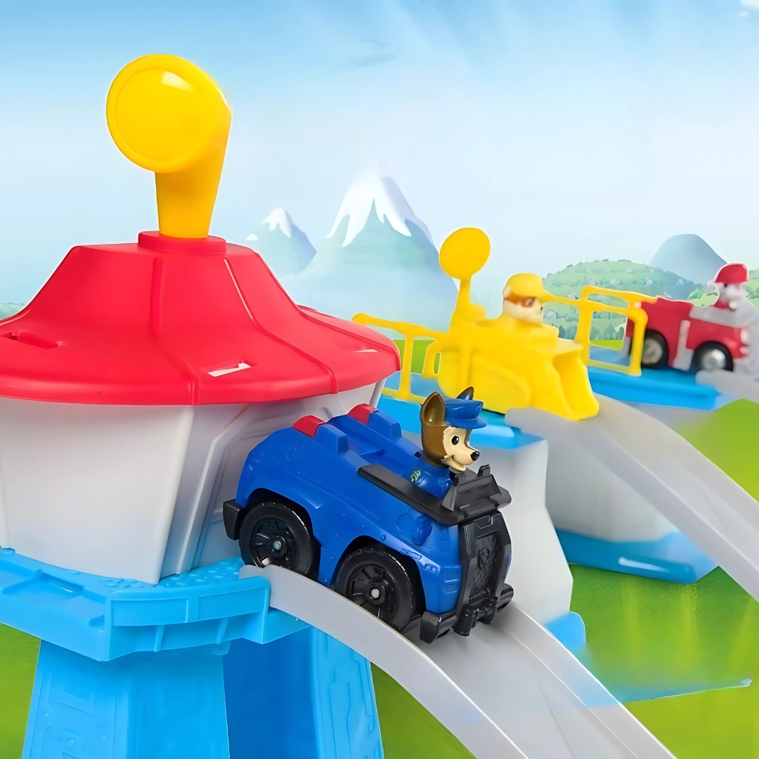 - Interaktiv Design – Barnen njuter av oändligt spel tack vare de rullande bilarna och flerfacks-rutschbanan