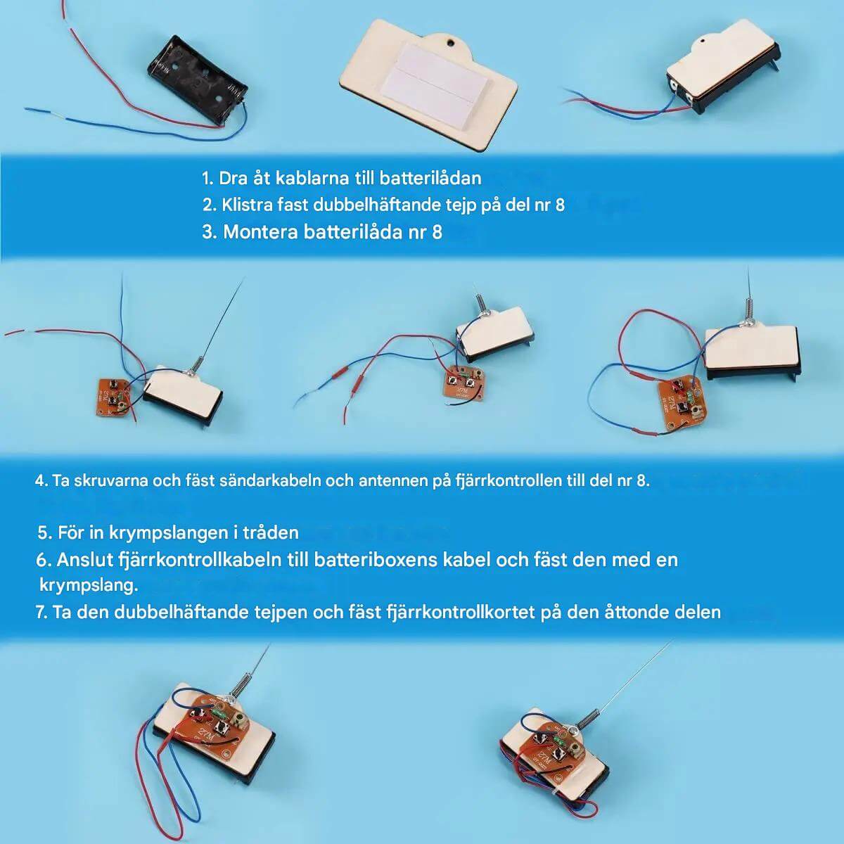 Observera: Lim, sandpapper, sax och batterier (4 x AA) medföljer inte