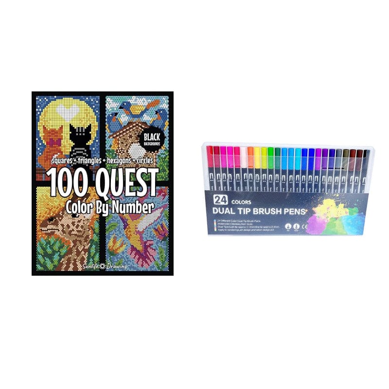 • 1× Coloring Quest-aktivitetsbok + 24 akvarellpennor med dubbel spets