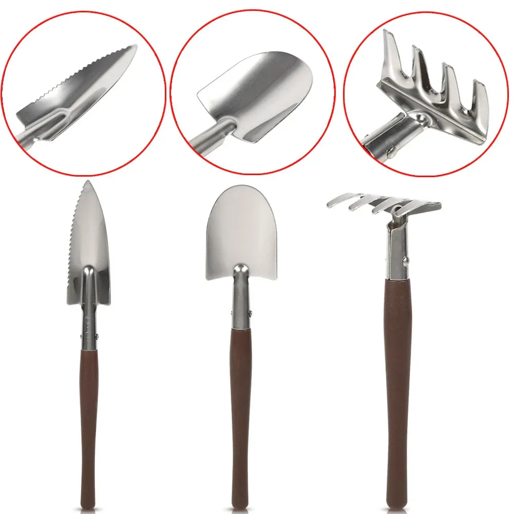 📌 3-i-1 Set för trädgårdsskötsel – Innehåller spade, spatler & rake – perfekt för att luckra jorden, plantera & sköta.