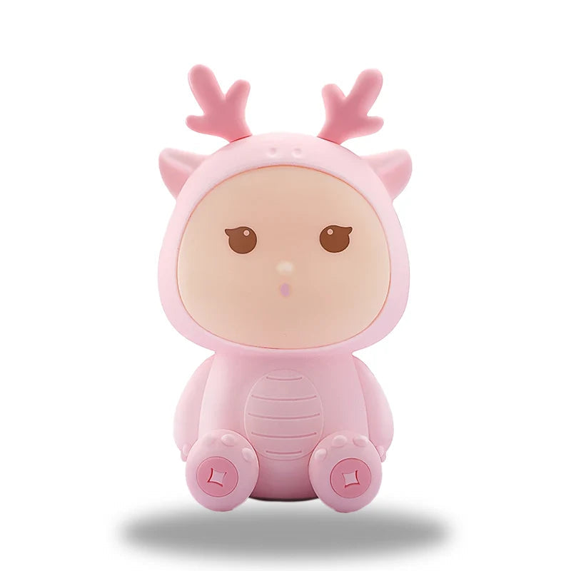 Vårt nattljus avger en mjuk glöd som hjälper till att lugna barn när de somnar. Perfekt för att följa med godnattberättelser, tillför den en lugnande närvaro hela natten. Med stora, vänliga ögon och ett sött uttryck blir denna lampa en älskad följeslagare som hjälper till att etablera en lugnande godnattrutin för ditt lilla barn.