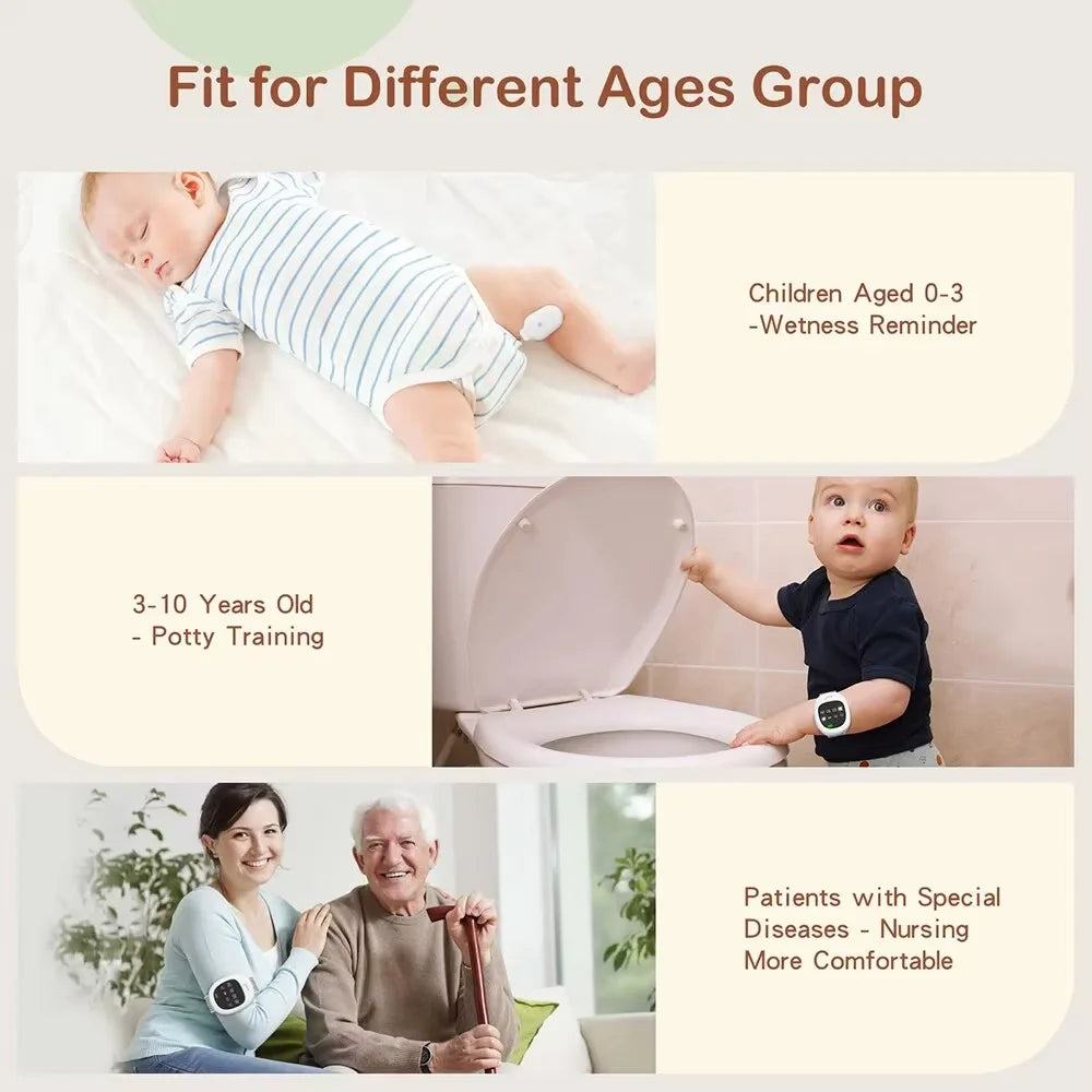 Hjälp ditt barn att vakna torrt och självsäkert med denna trådlösa sängvätalarm. Utformad för att stödja potträning och nattlig toalettvanor, denna smarta enhet har en klämma kissensor och en fjärr vibrationsalarm för milda nattliga påminnelser. Perfekt för barn och individer med specialbehov, detta lättanvända system främjar självständig potträning och bättre sovhygien.