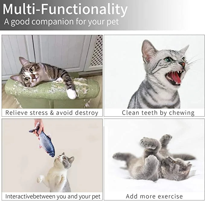 Håll din kattvän engagerad och underhållen med denna livliga interaktiva kattleksak fisk. Utformad för att simulera verklig rörelse, floppar och vickar den för att fånga din katts uppmärksamhet, vilket uppmuntrar aktiv lek och naturliga jaktinstinkter. Oavsett om din katt är full av energi eller behöver lite stimulans, är denna leksak den perfekta följeslagaren för timmar av skoj.