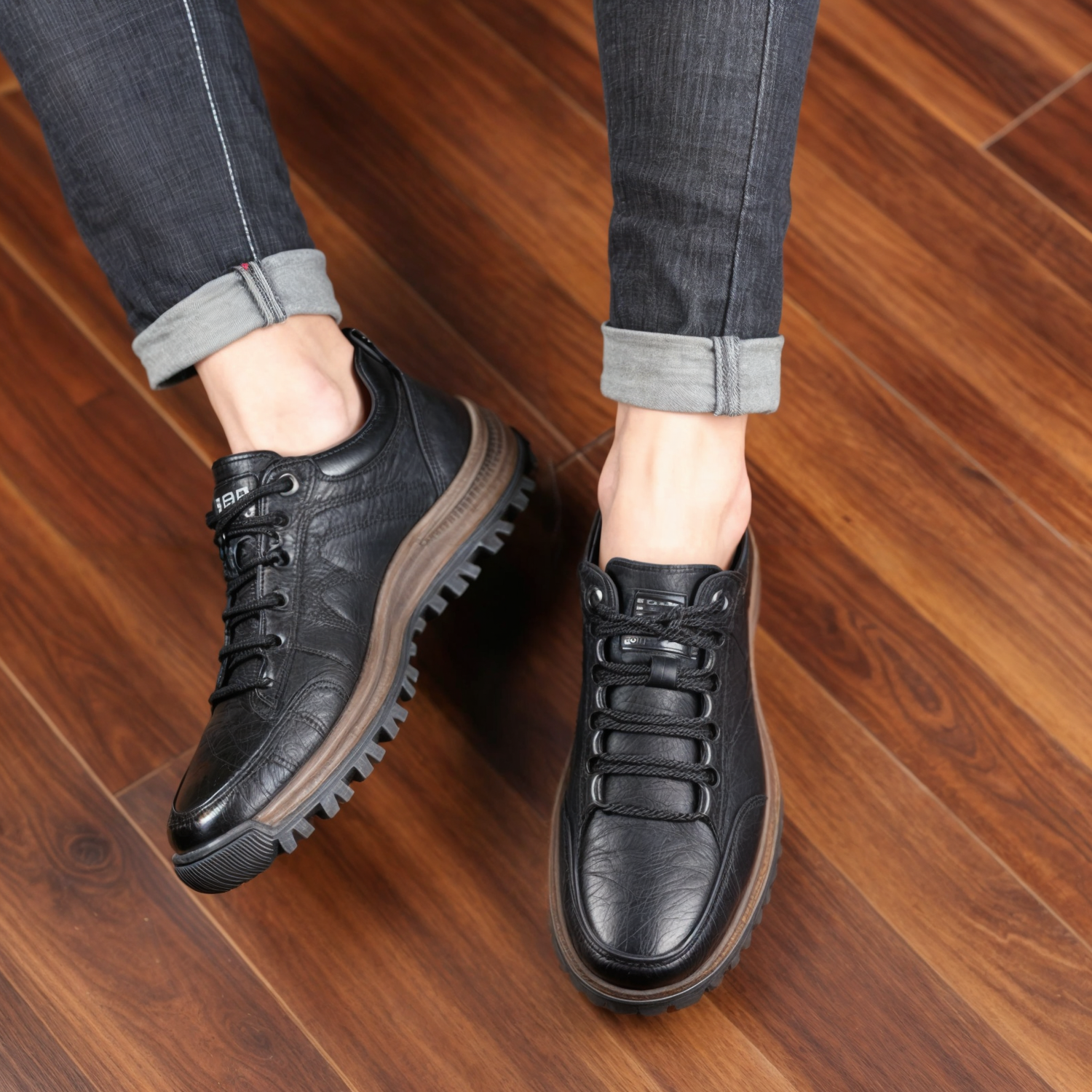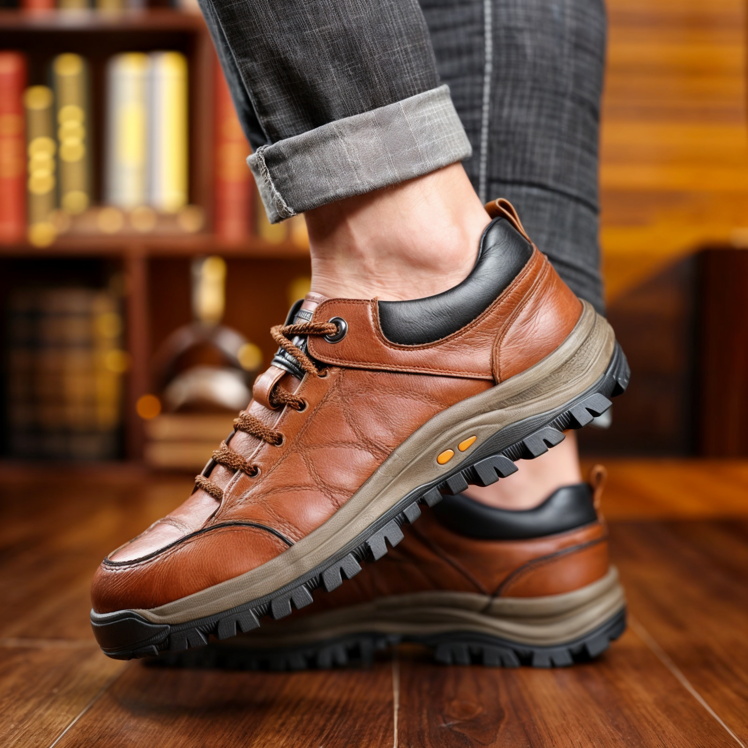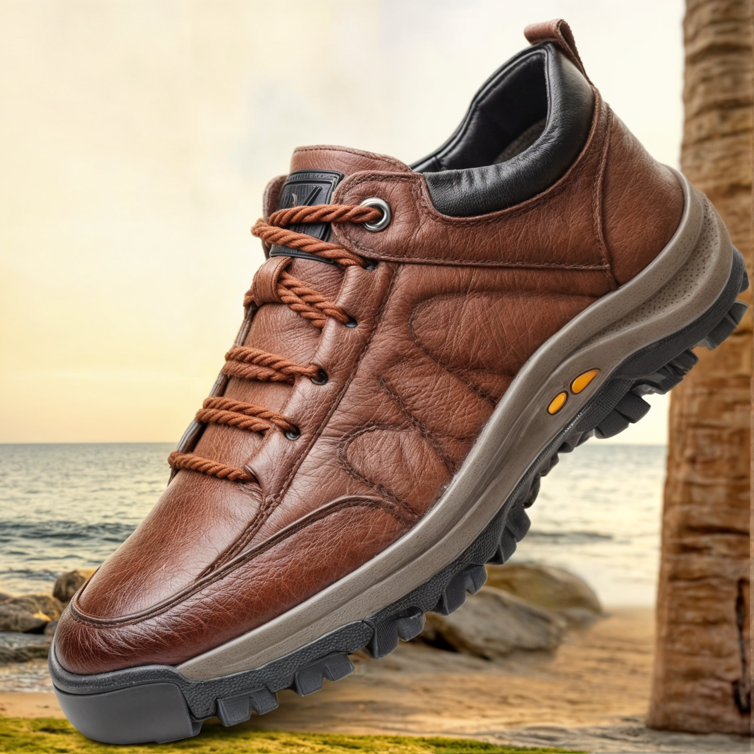 Våra vandringsskor med snörning är tillverkade av förstklassigt läder och utformade med precision, och de kombinerar hållbarhet med komfort på ett sömlöst sätt. Oavsett om du navigerar på steniga stigar eller promenerar på stadens gator håller dessa mångsidiga stövlar dig stadigt på fötterna tack vare sin innovativa halkskyddsteknik.