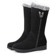 SLITSTARKA SNÖBEHÅLLNA SULOR: Dessa stövlar är utformade med tjocka platta sulor för extra grepp och ger tillförlitligt grepp på snöiga eller isiga ytor, vilket hjälper dig att hålla dig säker och säker under vinterpromenader.