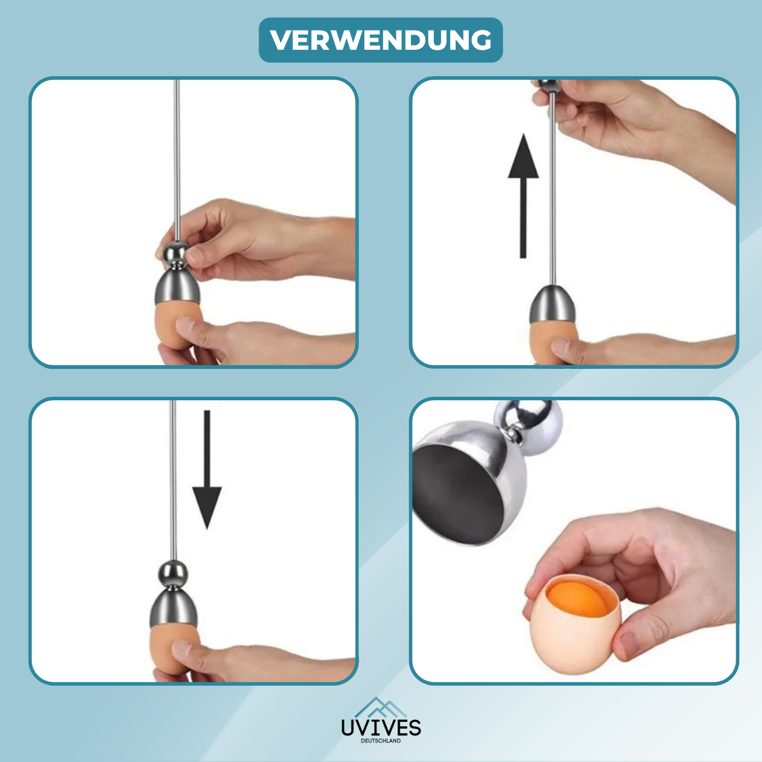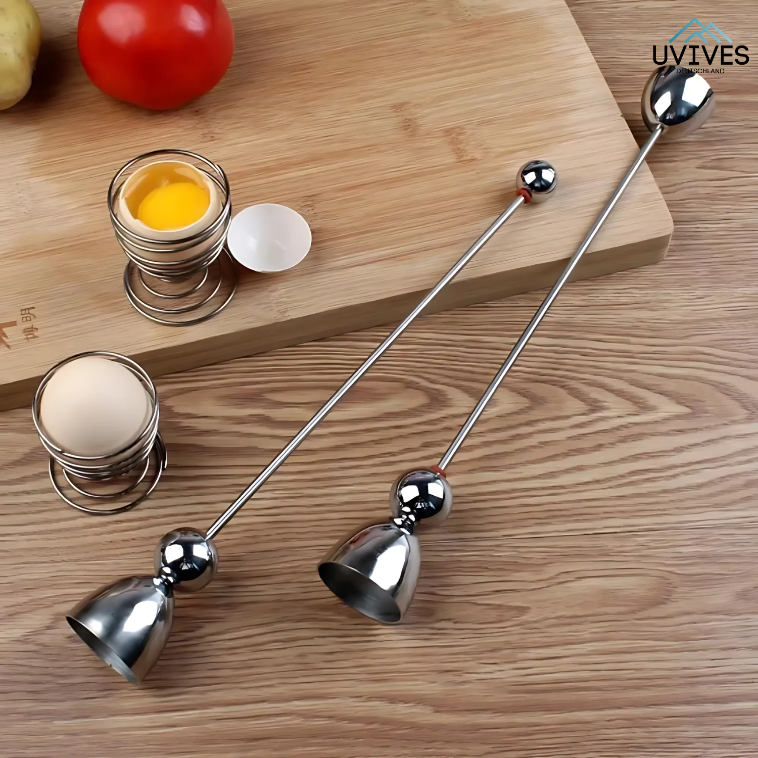 2 × Äggöppnare i rostfritt stål med slagmekanism
