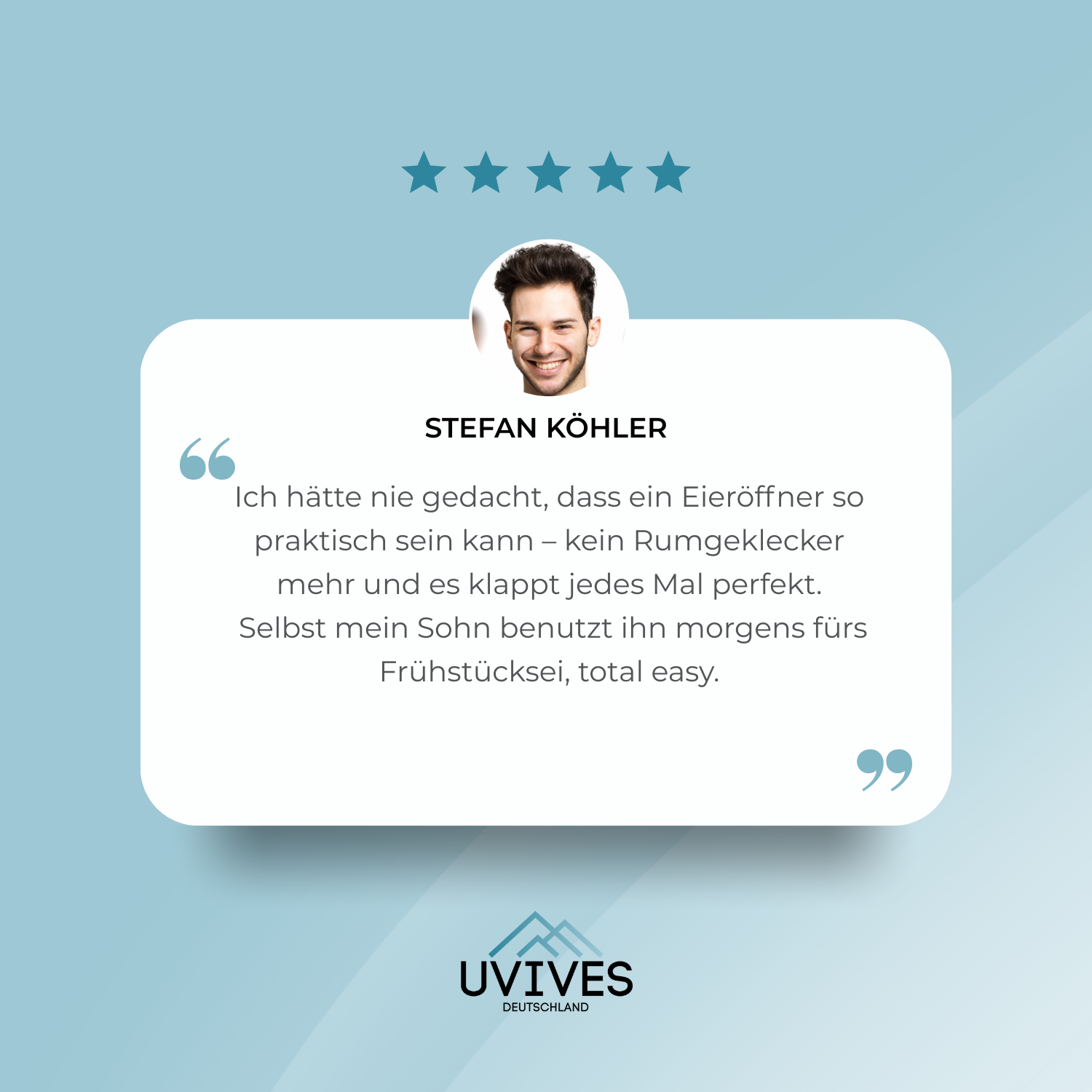 Med denna smarta äggöppnare i rostfritt stål går öppnandet snabbt, rent och helt utan ansträngning. Ett kort slag – och äggskalet lossnar jämnt, utan smulor, utan röran.