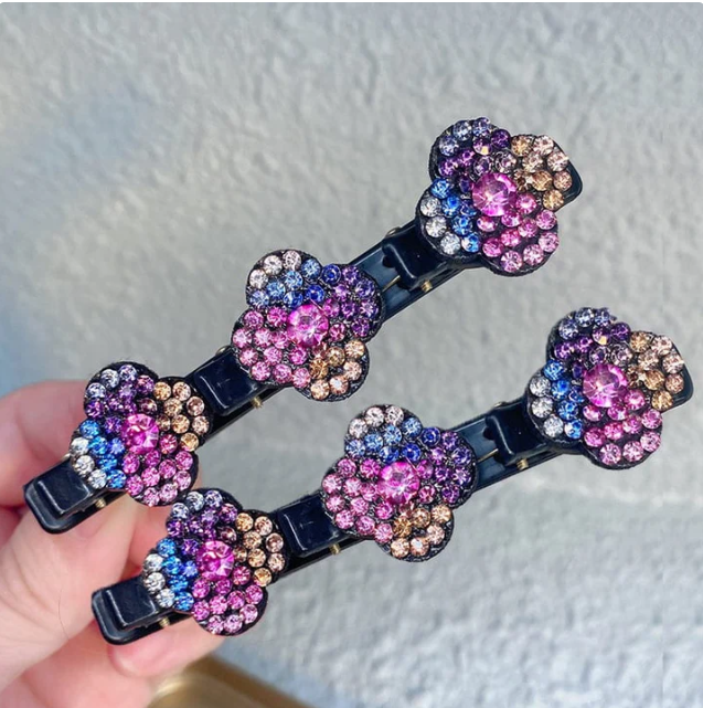 2 x GlimmTwist Sparkling Crystal Braided Hair Clips (slumpturval av färger)