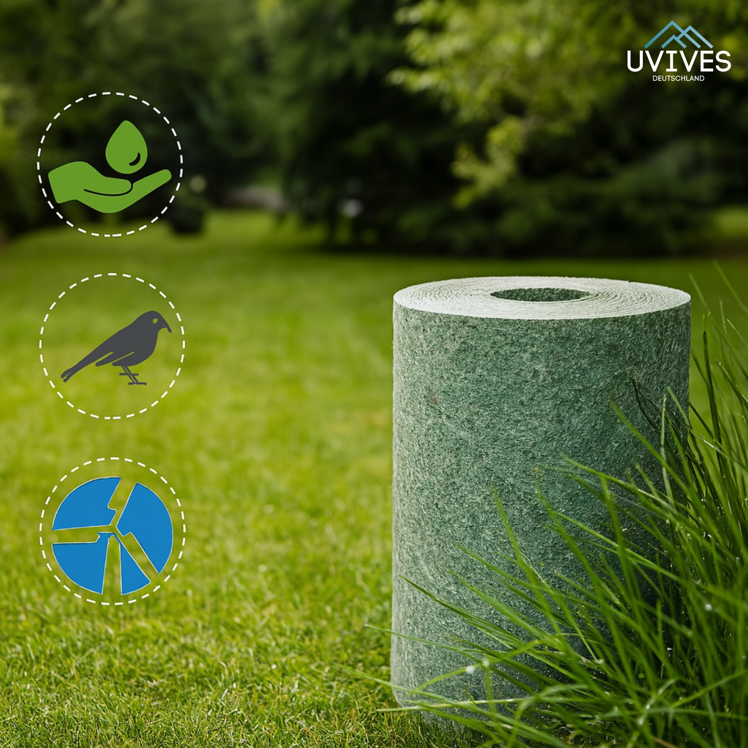 Inget omgrävande, ingen gödsling, ingen stress – med denna biologiskt nedbrytbara gräsmatta rullar du enkelt ut din drömgräsmatta. Vattna, vänta, häpna – snart växer ett jämnt, tätt gräs som av sig själv.
