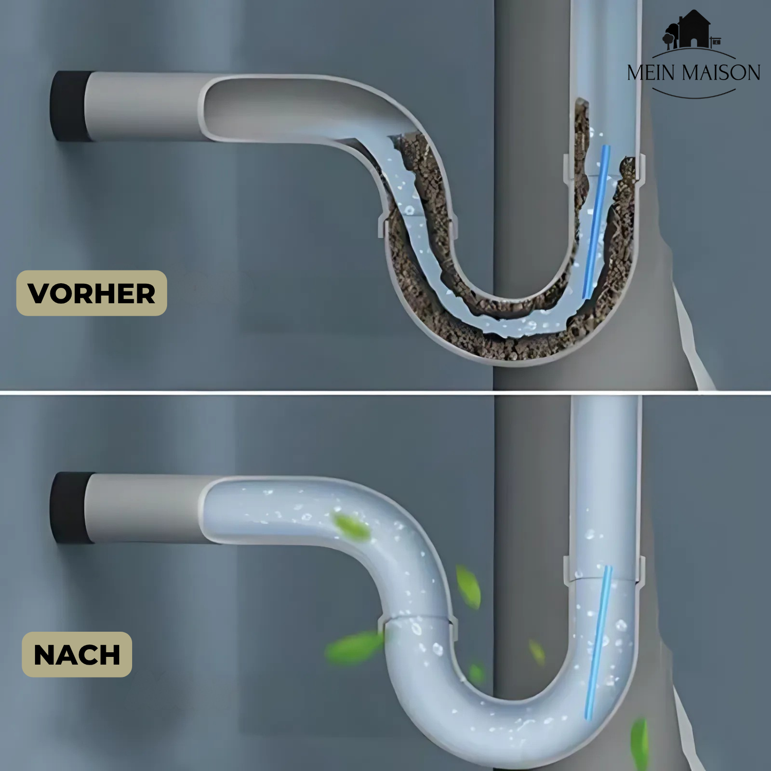 Luktar ditt avlopp regelbundet som ruttna ägg eller rinner vattnet bara långsamt ut? PipePure verkar djupt i röret – helt utan kemi. Enzymerna bryter ner avlagringar permanent och säkerställer fria rör.
