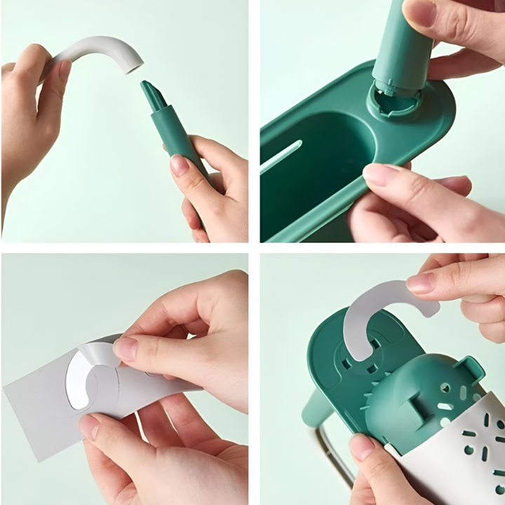 ✔️ Mångsidig passform: Anpassar sig till alla handfatsstorlekar och ger plats för svampar, diskmedel och mer.