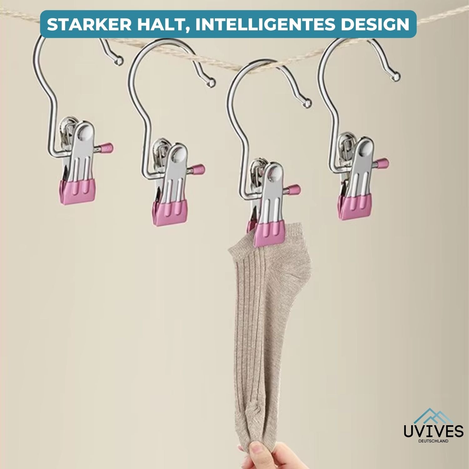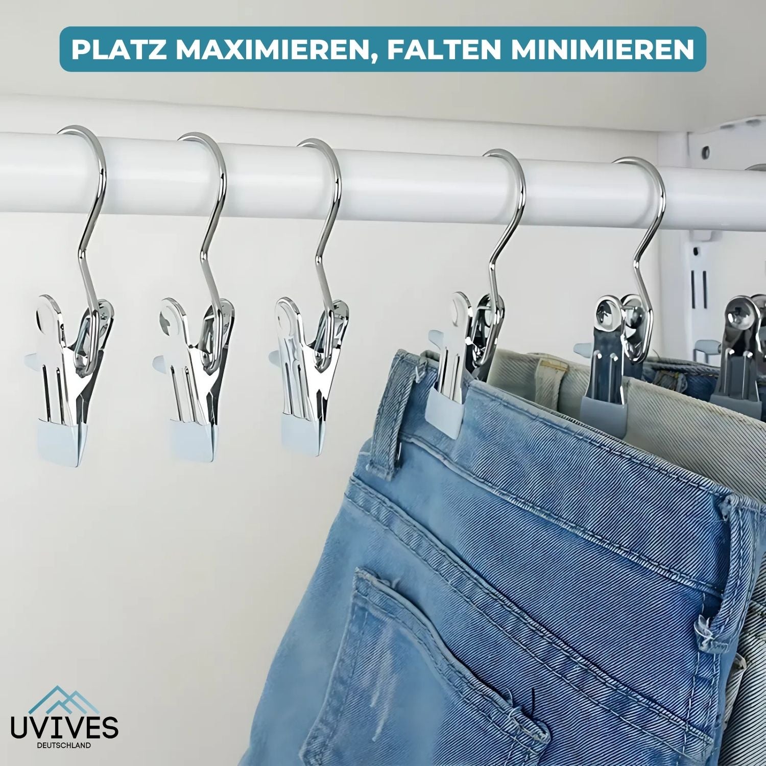De robusta klämma håller byxor, kjolar och mer säkert och överskådligt.