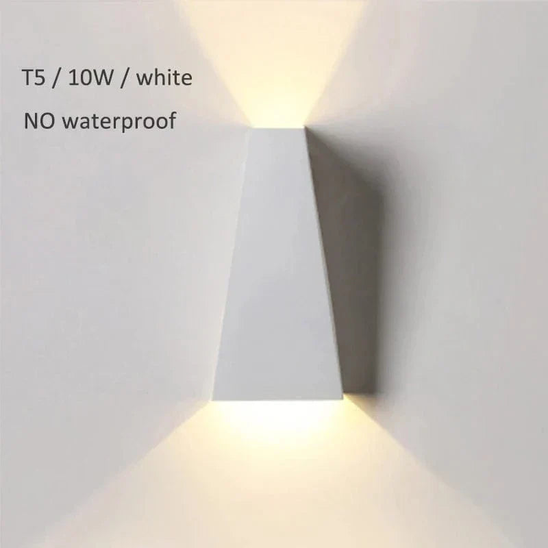 Denna mångsidiga 10W LED vägglampan är designad för både inomhus- och utomhusbruk, och erbjuder ett varmt vitt ljus som förbättrar atmosfären i varje utrymme. Dess dubbelhuvuddesign och minimalistiska geometri gör den till ett perfekt tillskott i sovrum, entréer och hallar.