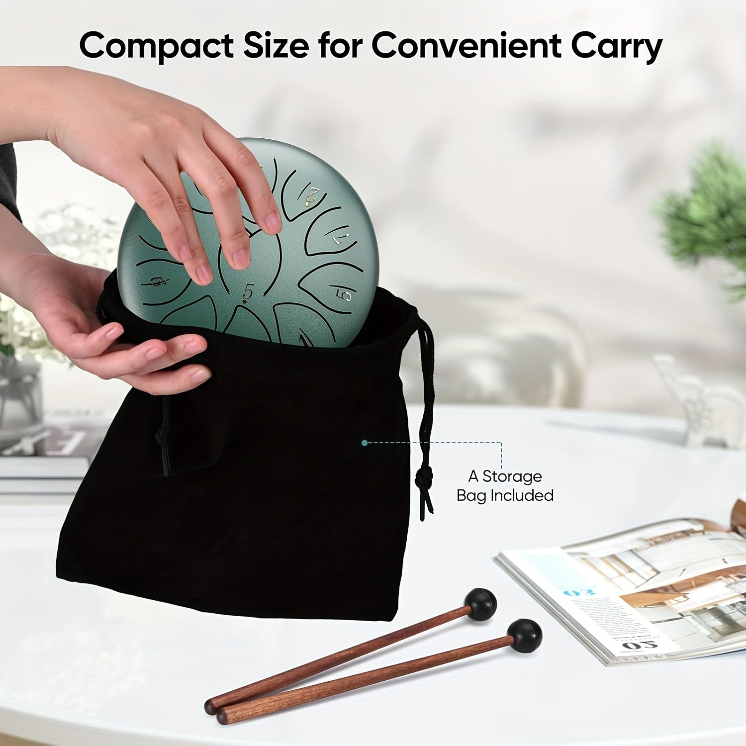 Ge harmoni och avslappning till vilket utrymme som helst med 11-noters ståltungtrumma, en kompakt och mångsidig ståltungtrumma designad för både nybörjare och erfarna musiker. Med 11 lugnande toner skapar denna trumma lugnande melodier som är perfekta för meditation, yoga, mindfulness eller musikterapi. Tillverkad av slitstarkt, vattenbeständigt stål är den perfekt för inomhus- eller utomhusbruk, oavsett om det är i trädgården, på en balkong eller under kreativa sessioner hemma.