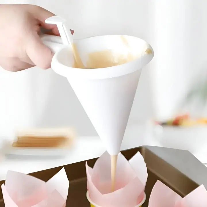 Känner du till problemet med spilld deg och ojämlika portioner? BatterDrop säkerställer precis dosering och gör bakningen renare och enklare. Perfekt för pannkakor, cupcakes, våfflor och mer!