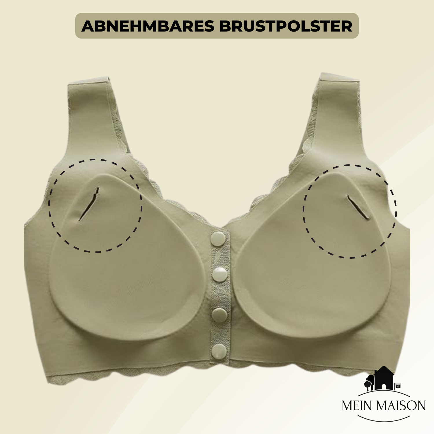 CozyForm-bh:n med praktiska framknäppningar anpassar sig perfekt efter din figur och ger ett säkert stöd utan tryck, drag eller glidning. Den andningsbara spetsen och den genomtänkta designen erbjuder högsta komfort – idealisk för långa dagar, speciella tillfällen eller helt enkelt för att känna sig bekväm hemma.