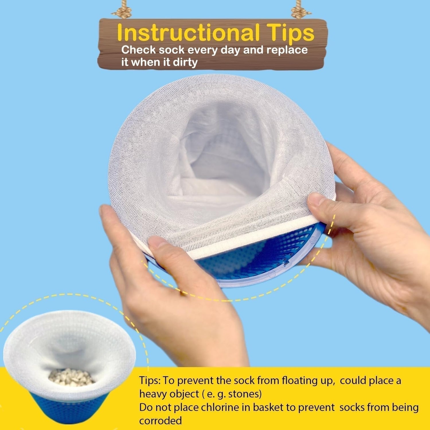 Nu stannar smutsen i nätet – inte i systemet! Dessa filterstrumpor skyddar ditt poolfiltersystem på ett tillförlitligt sätt mot löv, hår, sand och annat skräp. Sätt bara på dem över skimmerkorgen – och ditt filter förblir rent, effektivt och underhållsfritt. Spara tid, pengar och nerver!