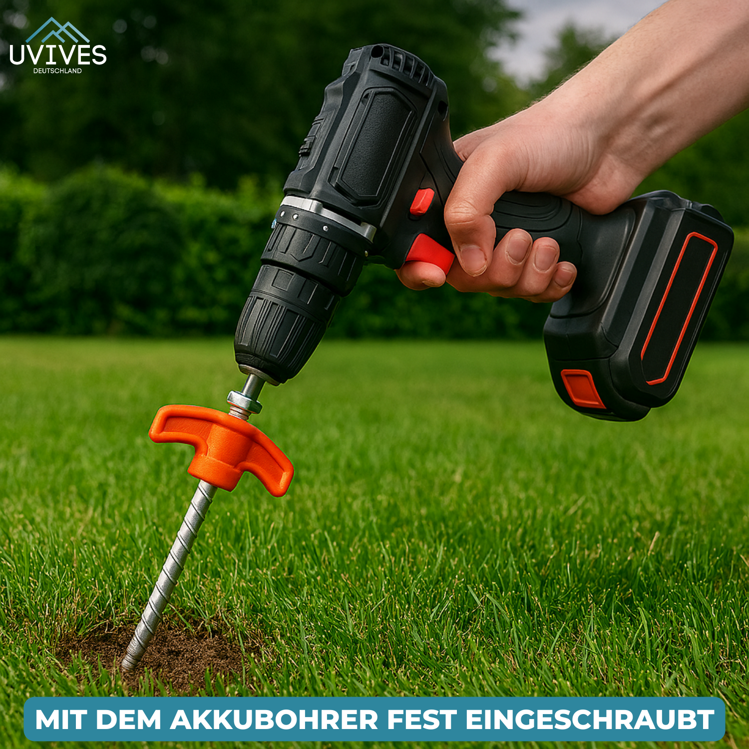 Med DrillPeg fäster du ditt tält, paviljong eller solsegel snabbt och enkelt med din batteridrivna skruvdragare.