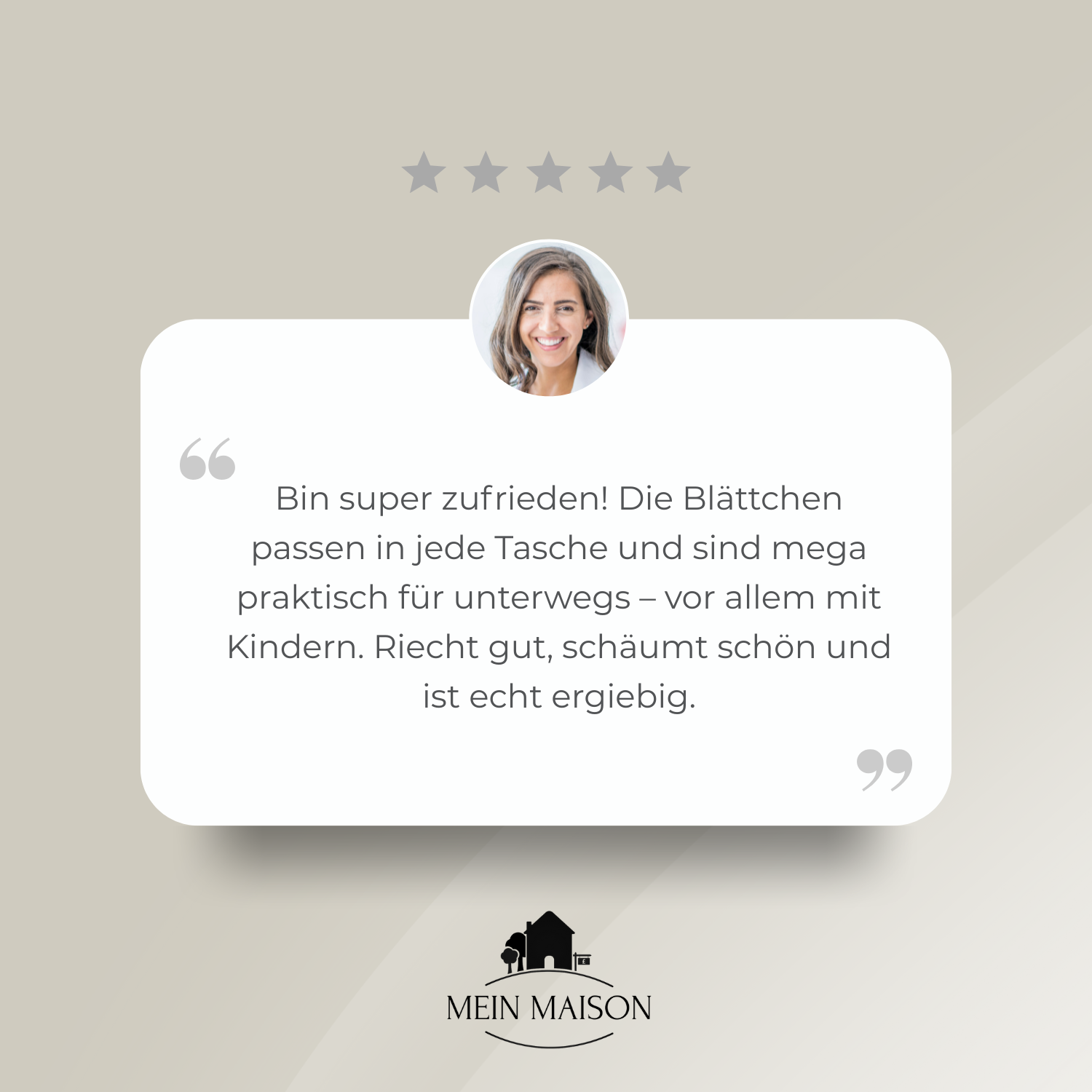Varje låda innehåller 50 tvålblad – tillräckligt för många användningar.
