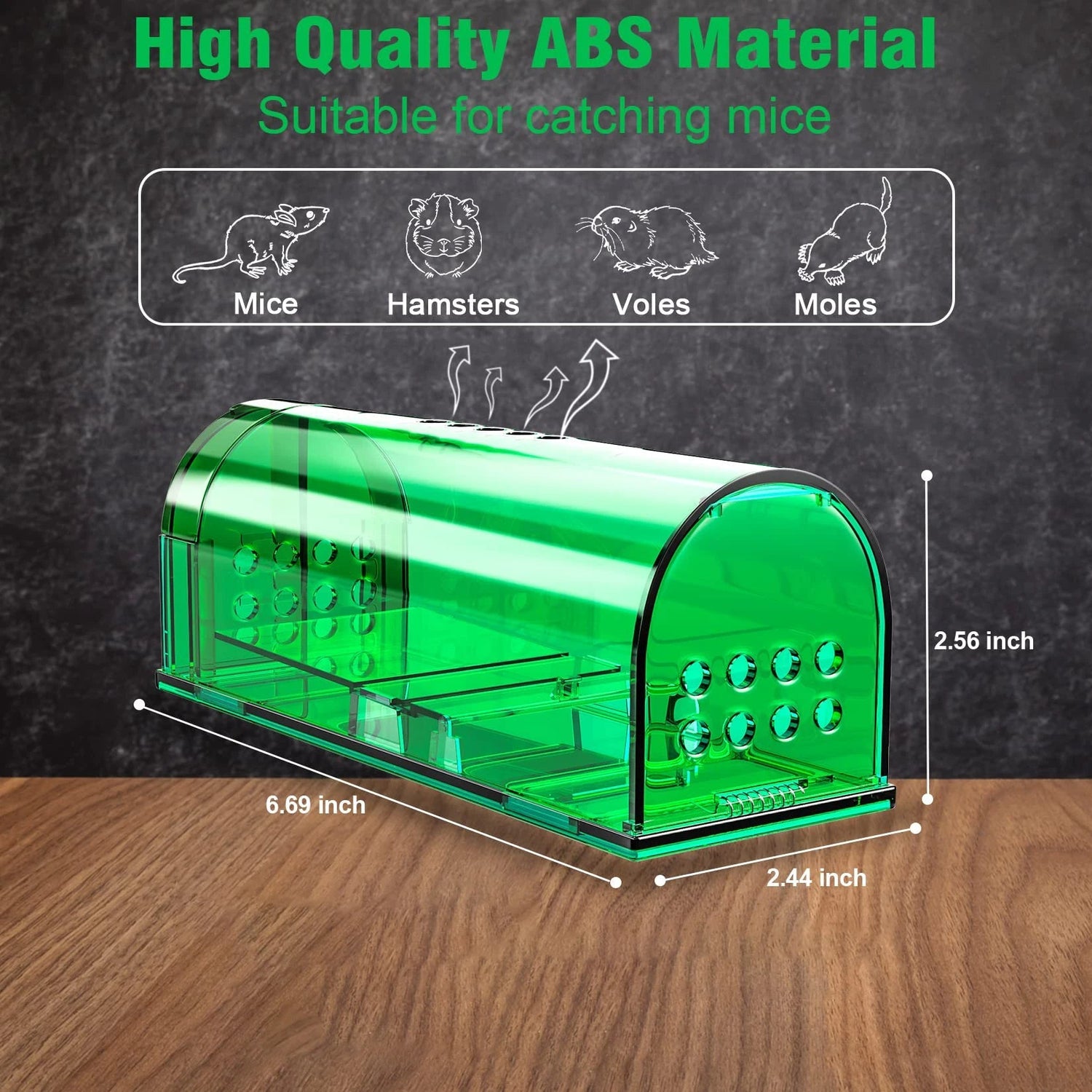 Den separata beteshållaren garanterar korrekt placering av maten, och den genomskinliga designen låter dig stressfritt observera din fångst. Svansskador undviks tack vare den innovativa ingången, och den lilla storleken gör den idealisk för vindslott, källare och garag.