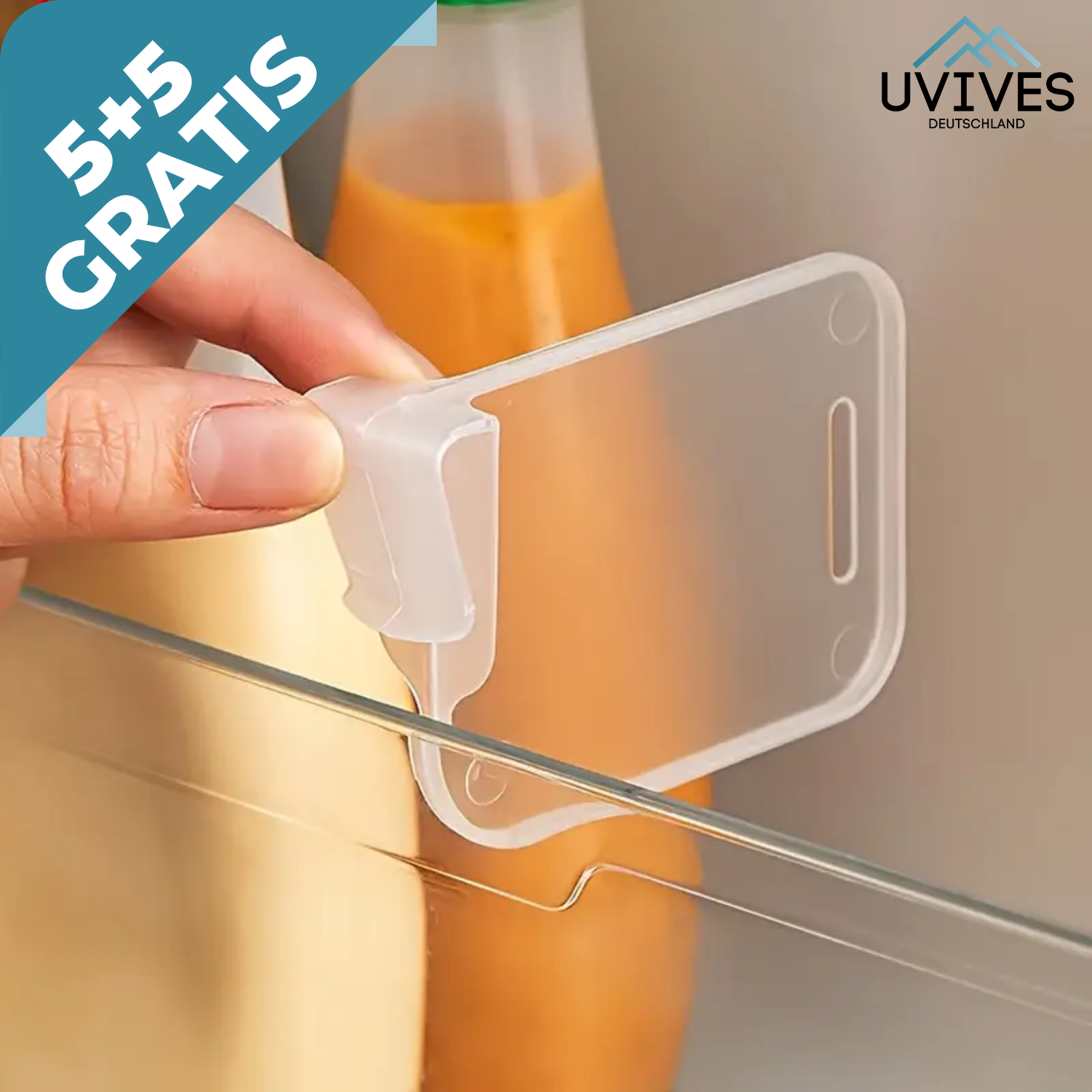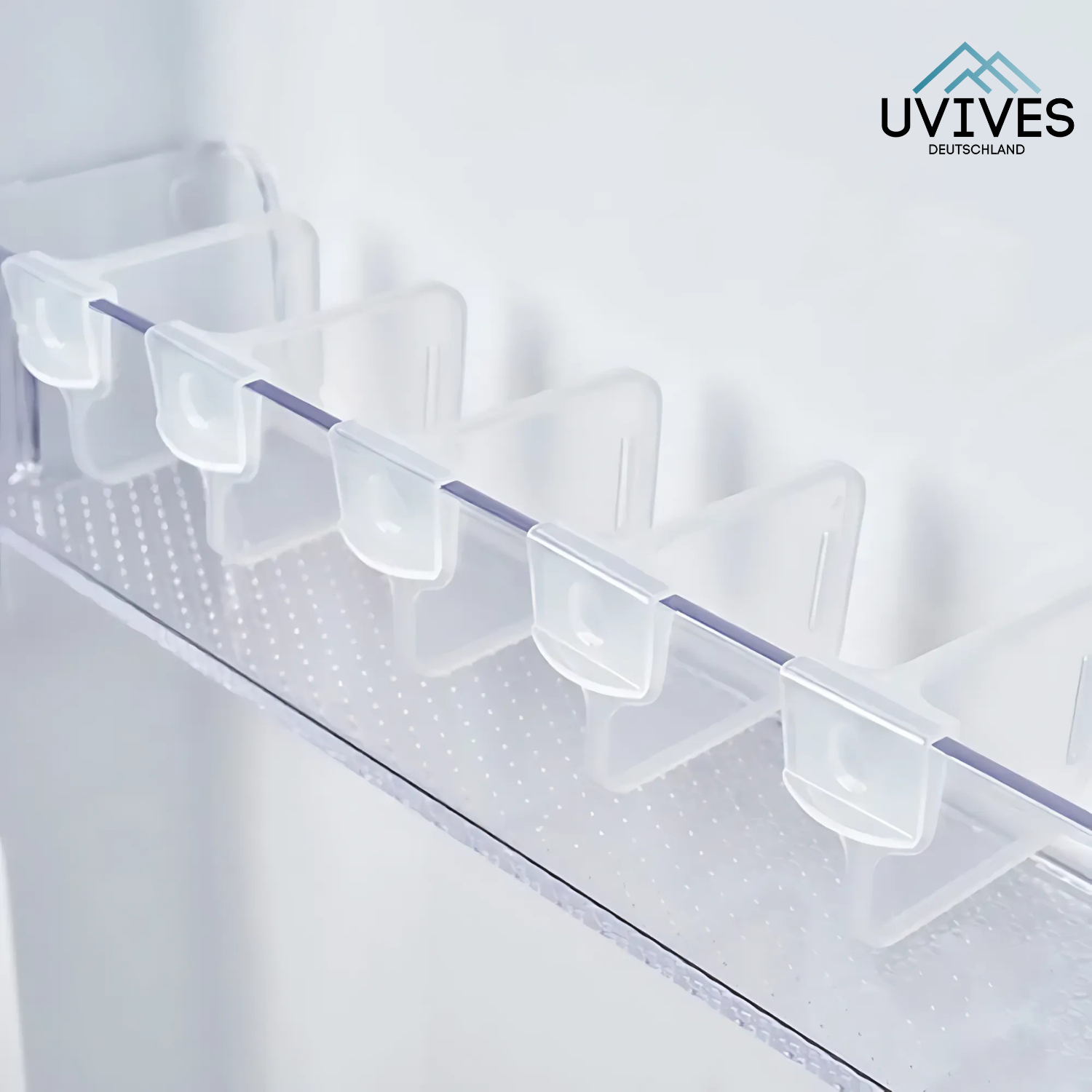 Paketet innehåller 10 justerbara kylskåpsavskiljare - tillräckligt för alla fack.