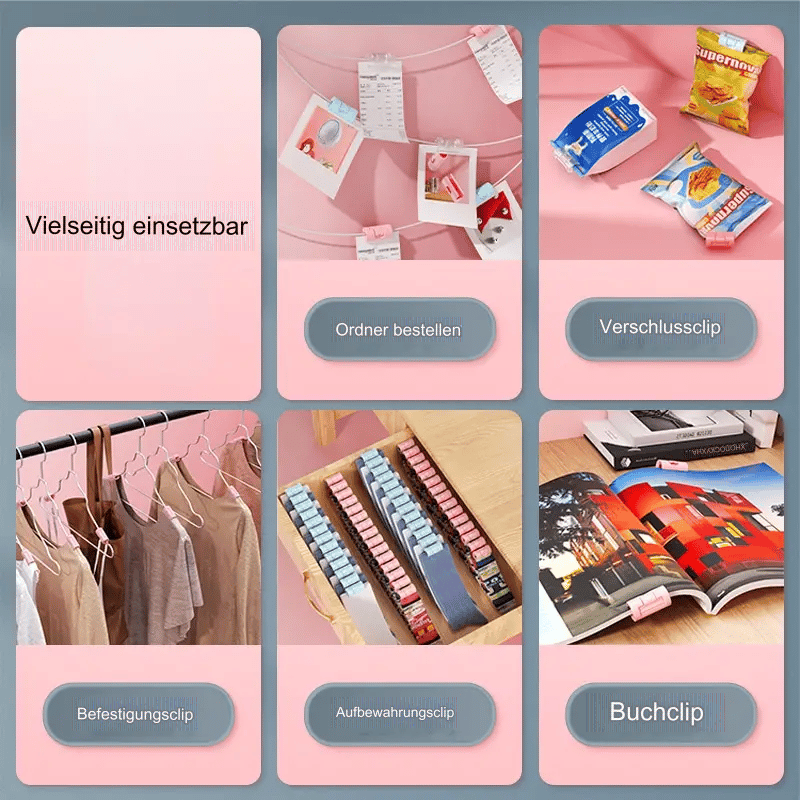 ✔ Enkel hantering: Clipsen är snabba och lätta att fästa utan att skada materialet.