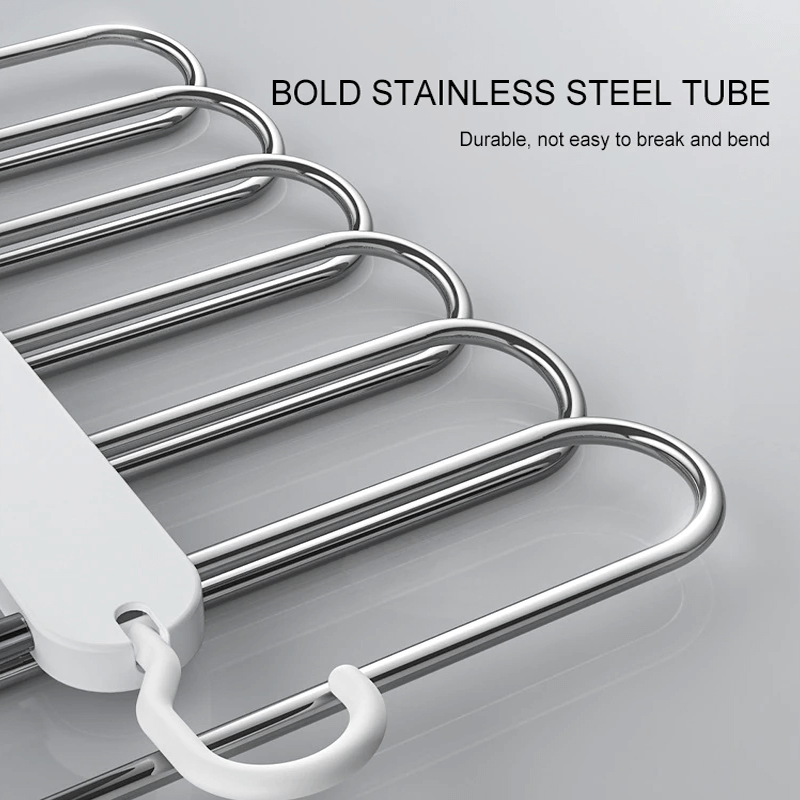 6-i-1 Hopfällbar Byxhängare i Rostfritt Stål | Multifunktionell Klädhängare för Garderob & Resa – Spara Utrymme med Justerbara Lager