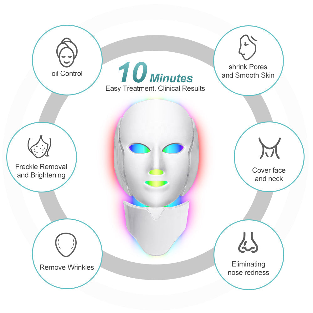 7 Färger Röd Ljusterapi Mask - Ansikte & Halsbehandling