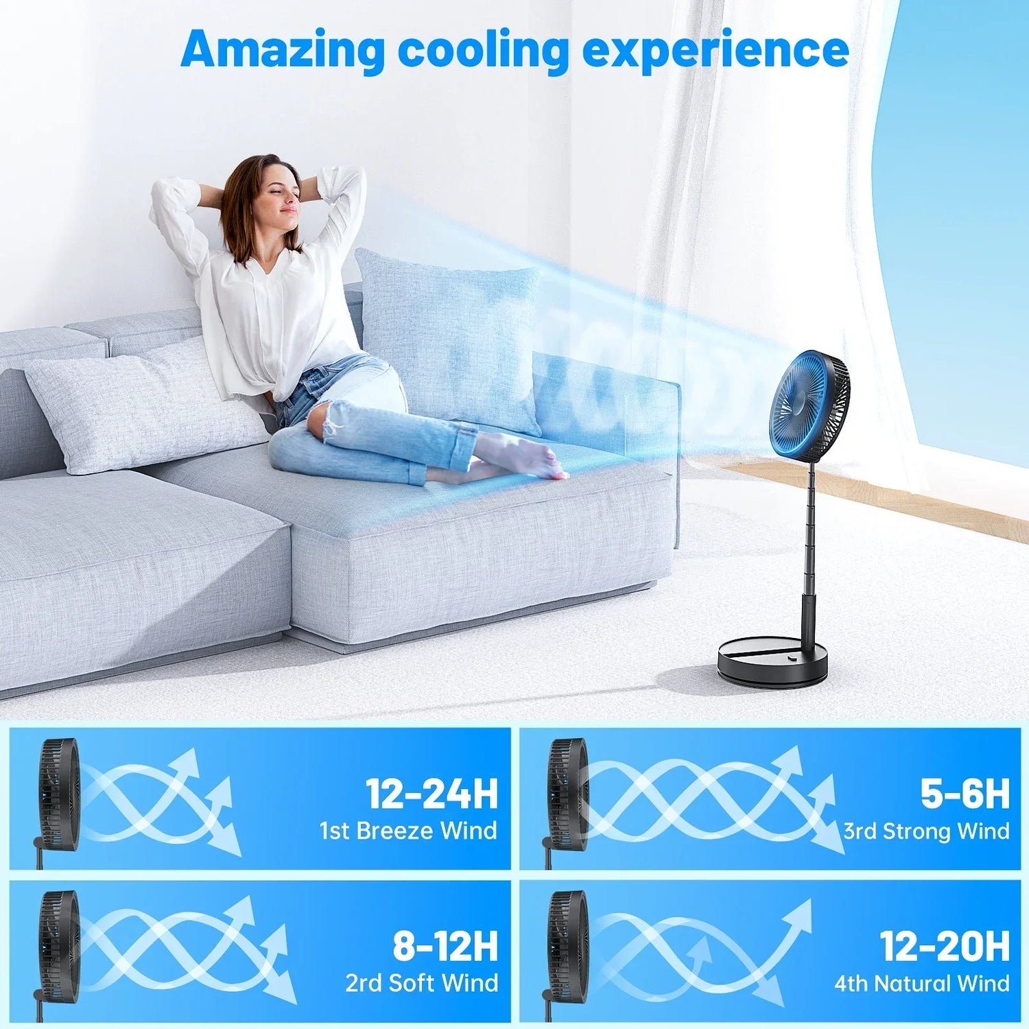 Denna 9-tums bärbara vikfläkt levererar starkt, justerbart luftflöde i en stilren, hopfällbar design. Med ett 7200mAh uppladdningsbart batteri, fjärrkontroll och mycket tyst drift, är den perfekt för hemmet, kontoret och utomhusbruk. Njut av långvarig svalkande komfort vart du än är.