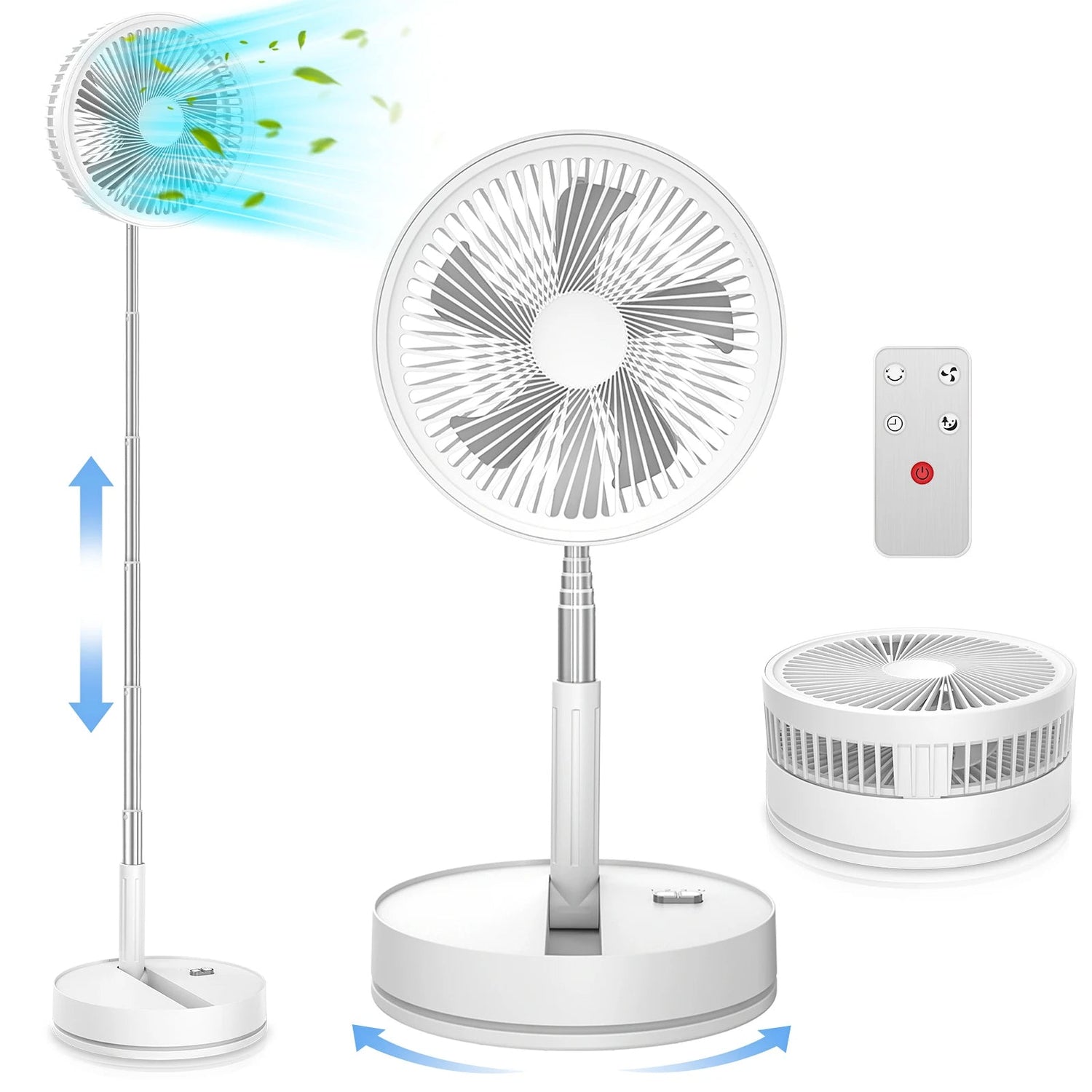 7200mAh uppladdningsbar vikbar golvfläkt med fjärrkontroll och 4 hastigheter