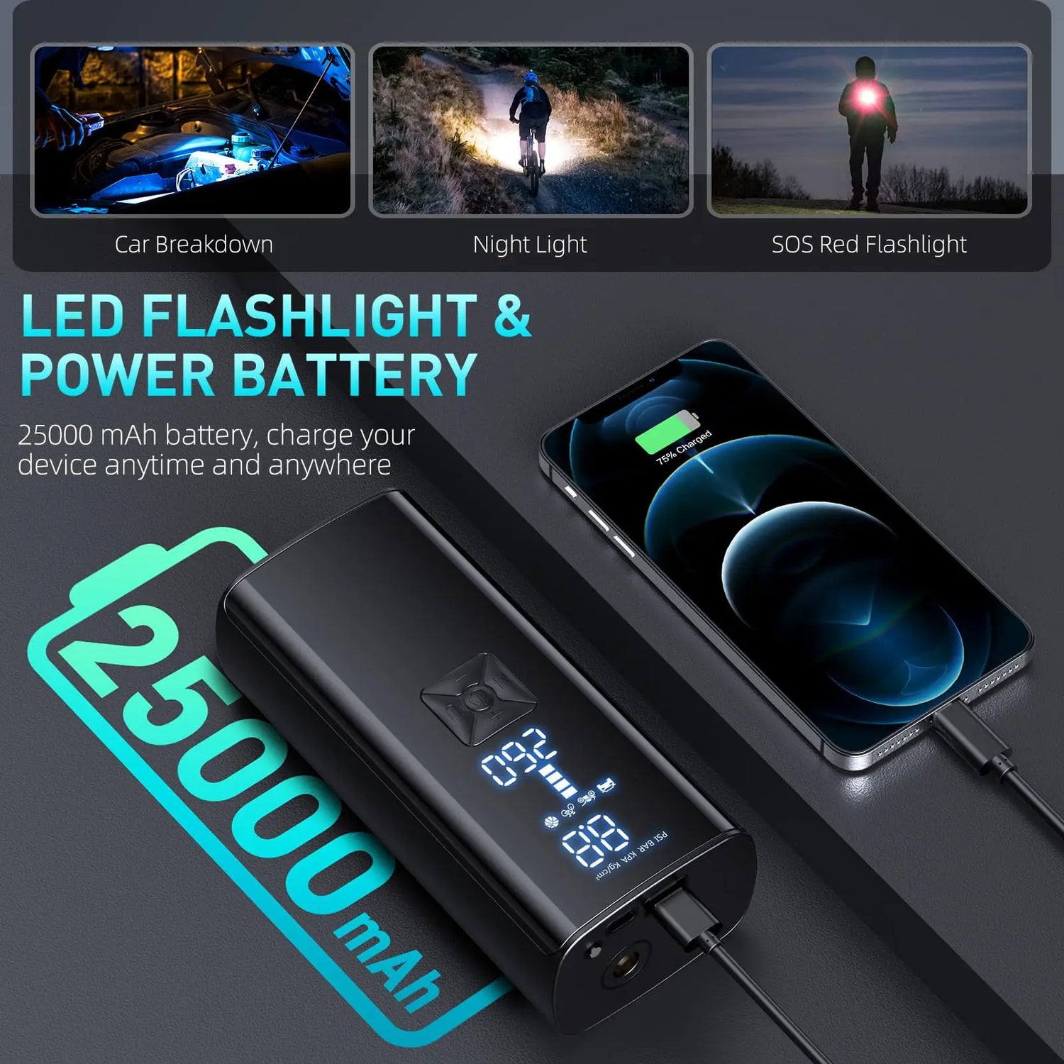 Drivs av ett massivt 25000mAh återuppladdningsbart batteri, levererar AirSwift 2 timmars kontinuerlig drift. Dess snabba uppblåsningsteknik gör den 2x snabbare och 30 % mer effektiv än vanliga pumpar—ingen extern strömkälla behövs.