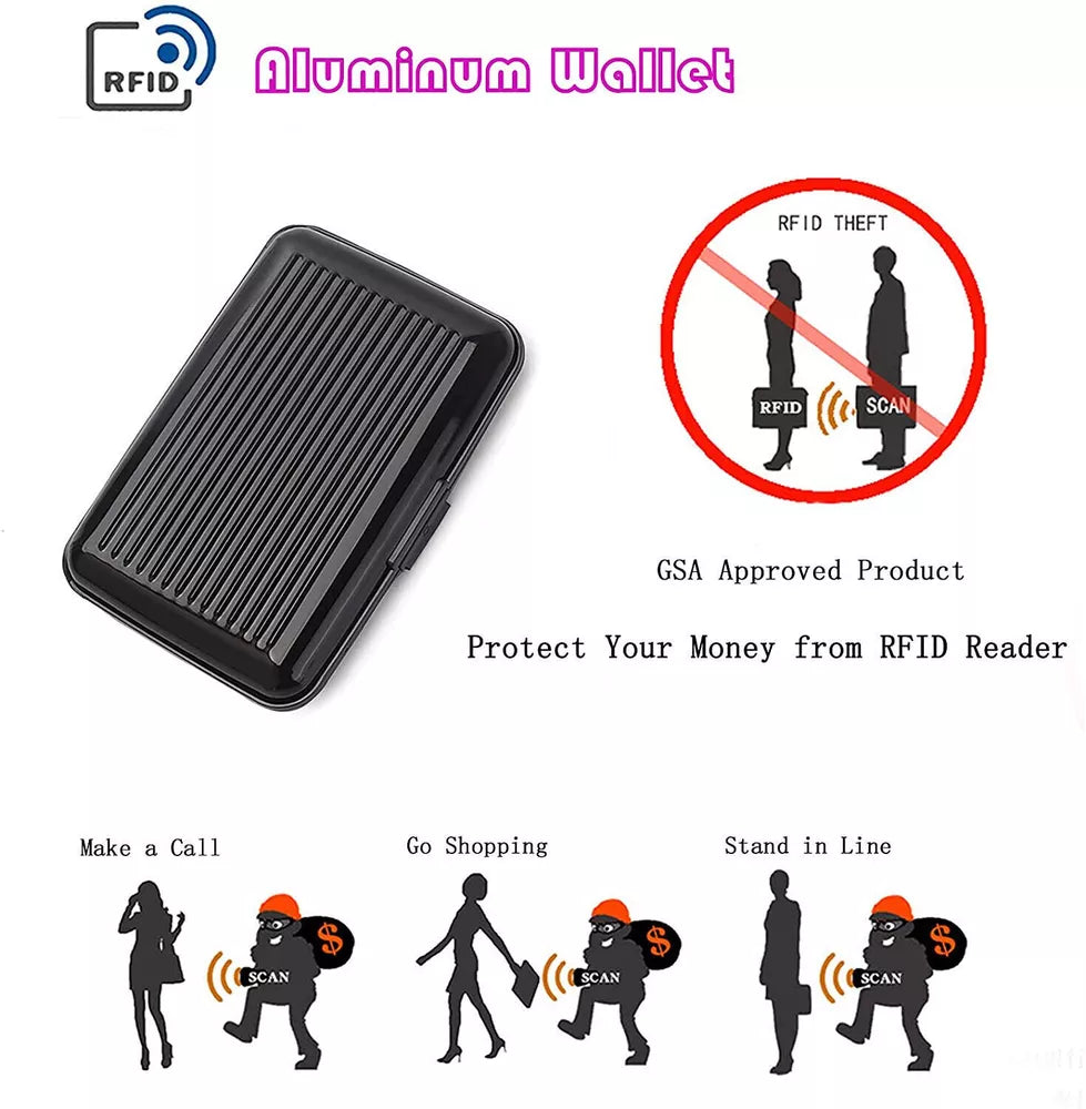 Skydda dina kreditkort, ID och annan känslig information från RFID-skimming. Det aluminiumskal fungerar som ett skydd mot obehöriga skanningar och håller dina uppgifter säkra var du än går.