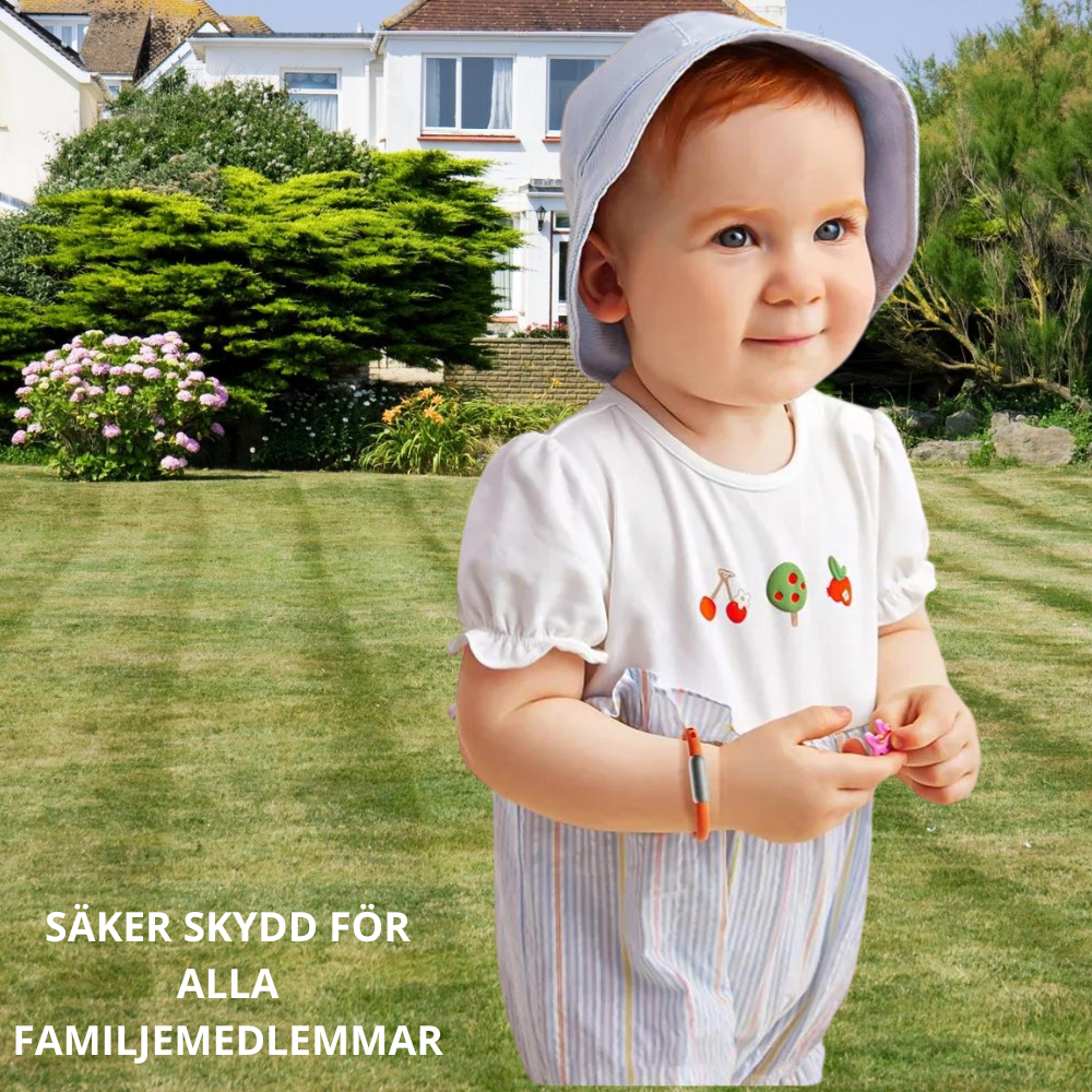 - Skyddsområde: Varje armband ger ett effektivt skydd på upp till 15 kvm omkring dig, vilket gör det perfekt för utomhusaktiviteter
