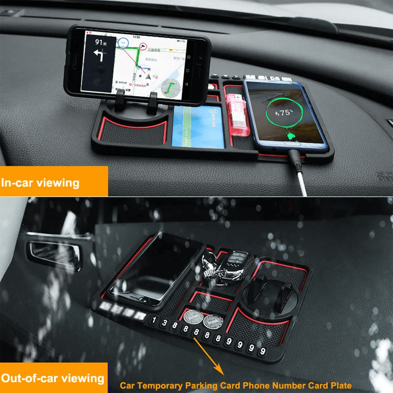 ✅ Enkel Installation - Erbjuder en okomplicerad lösning – placera den bara på instrumentbrädan, och du är redo att använda den som en halkfri telefonhållare och organisatör.