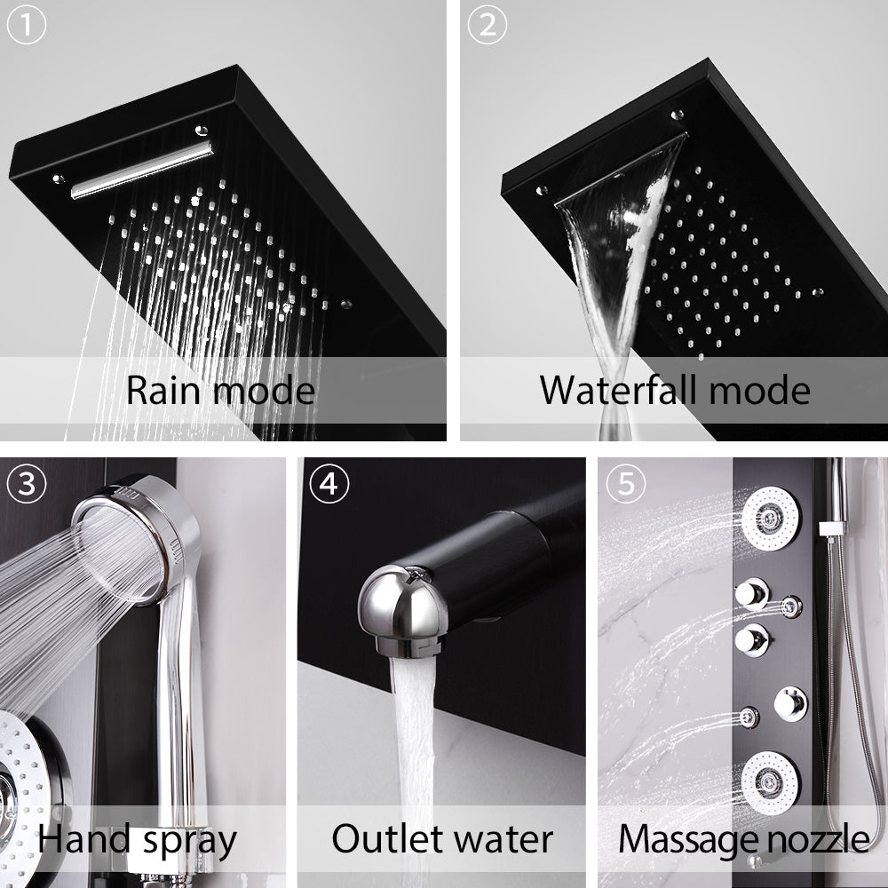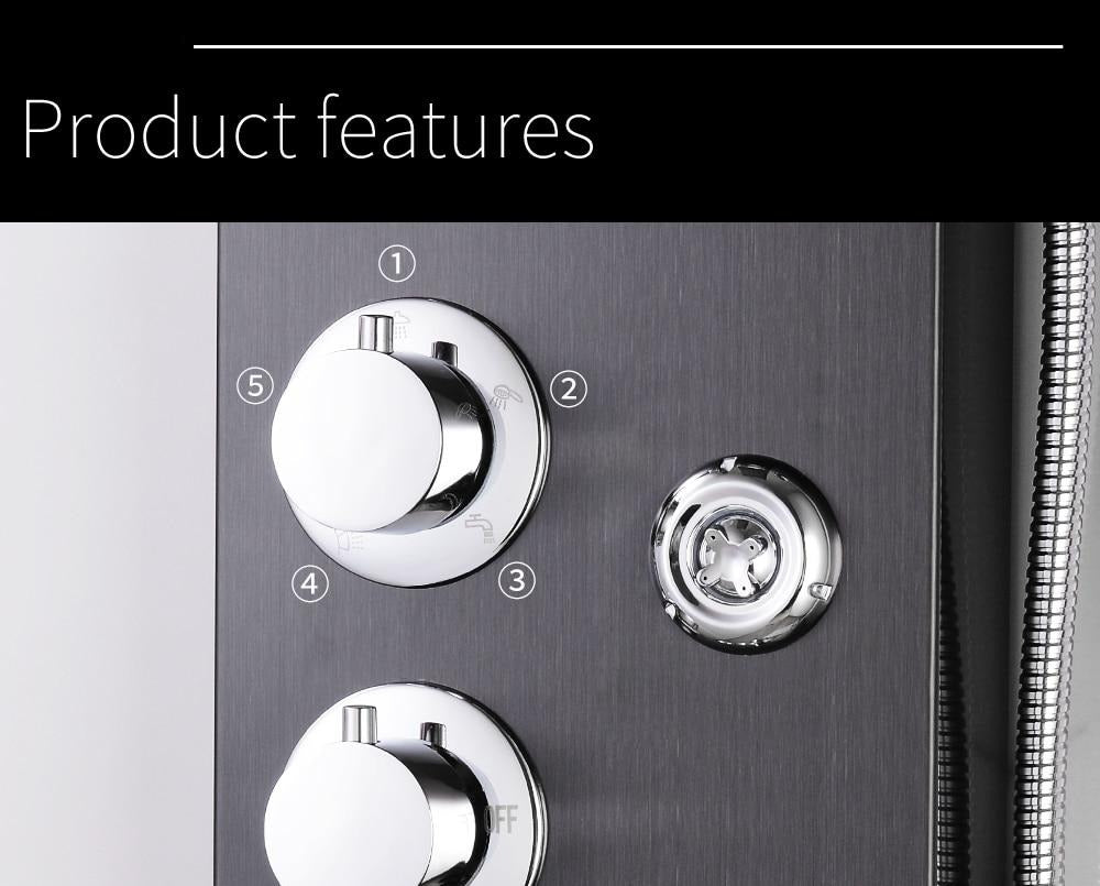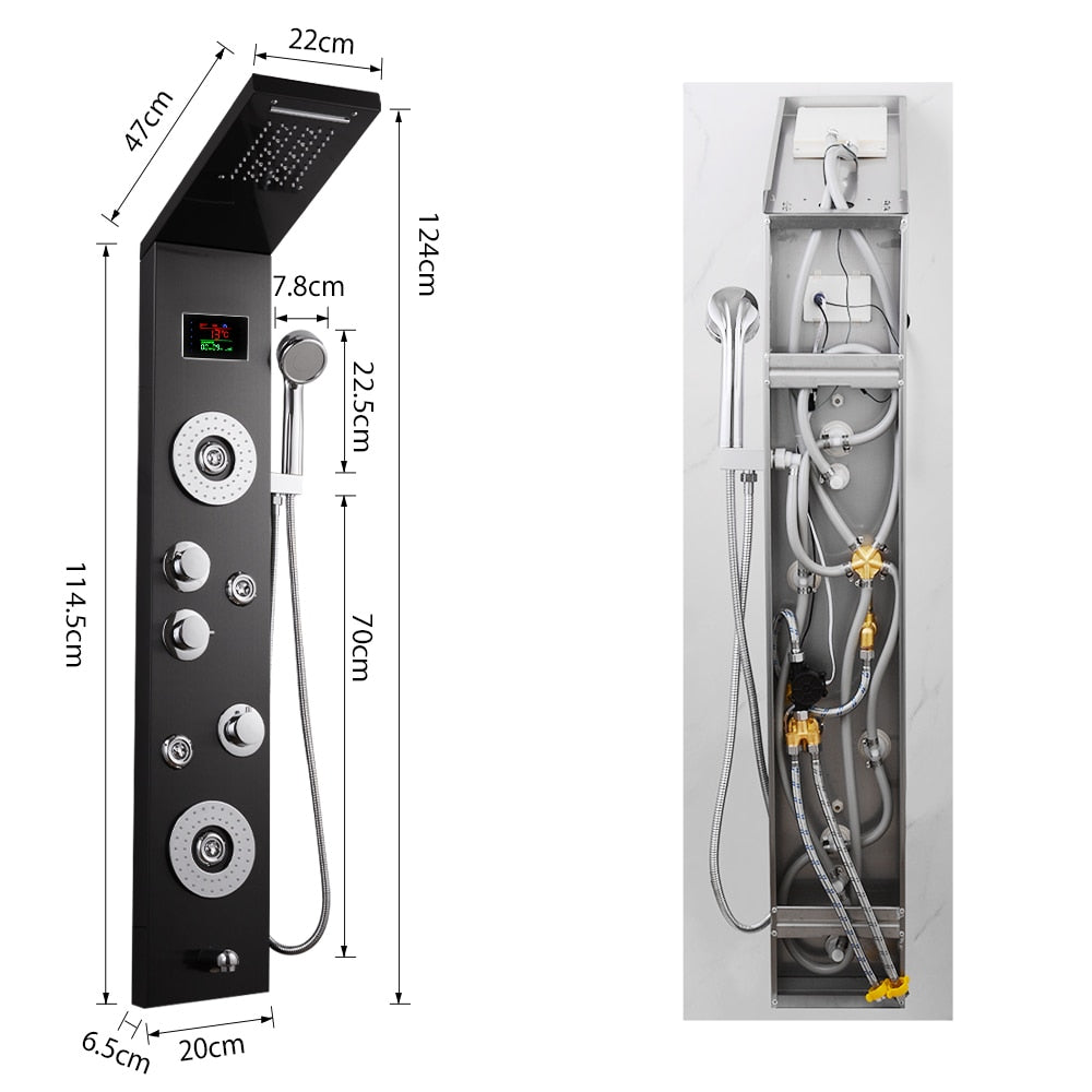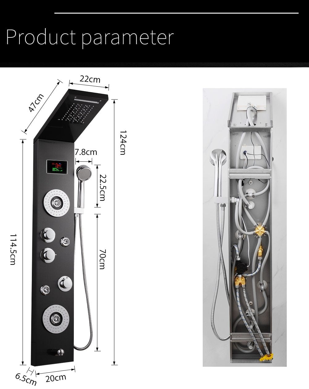 Förvandla ditt badrum till en spa-liknande tillflyktsort med denna eleganta och moderna duschpanel i rostfritt stål. Designad för både stil och funktionalitet, erbjuder denna panel en lyxig duschupplevelse med sina avancerade funktioner och eleganta design.