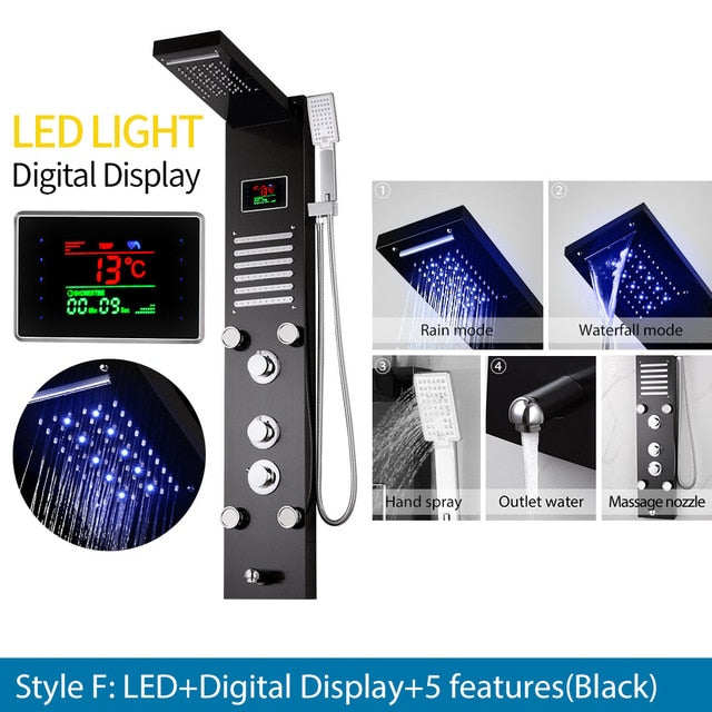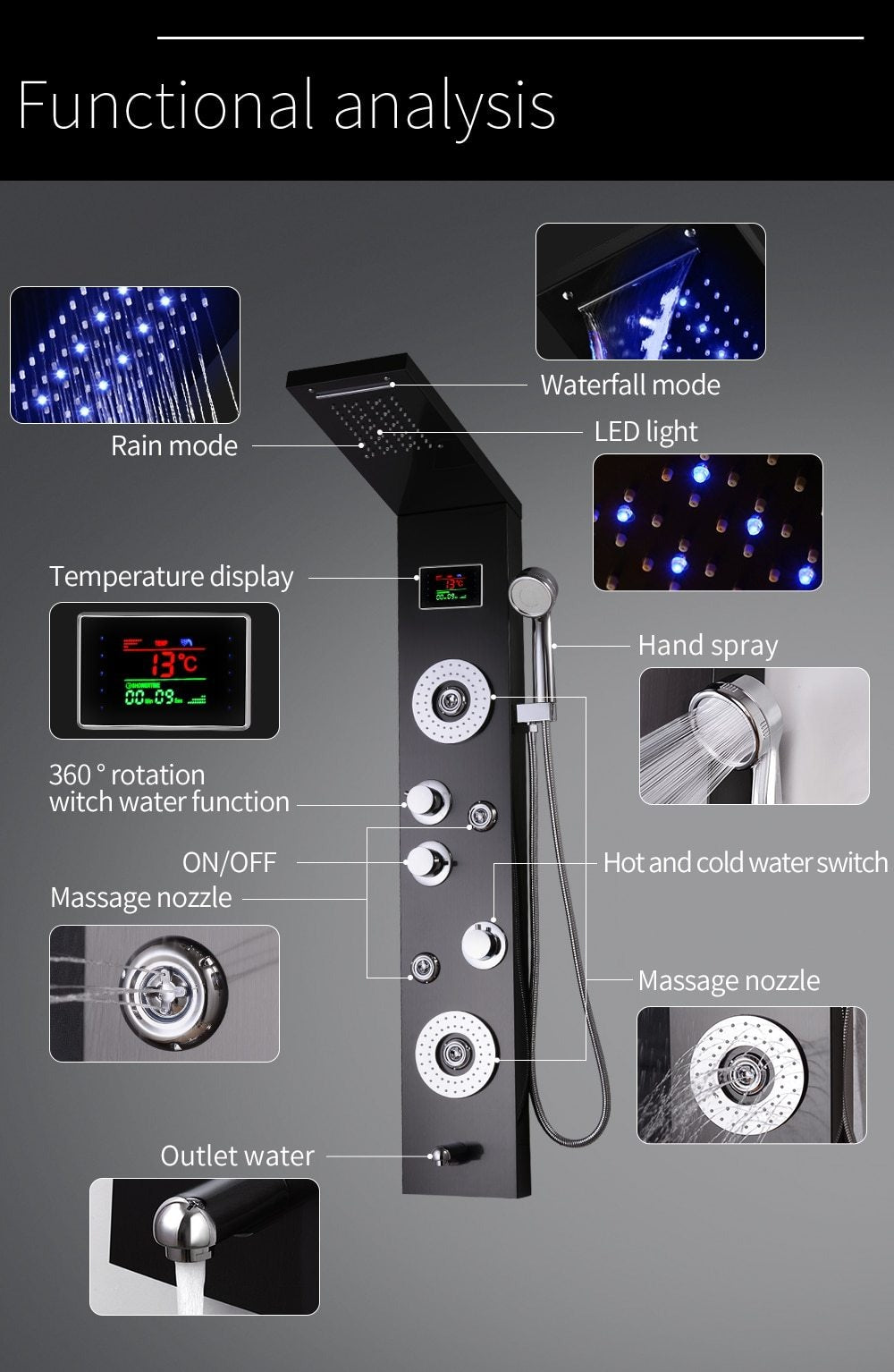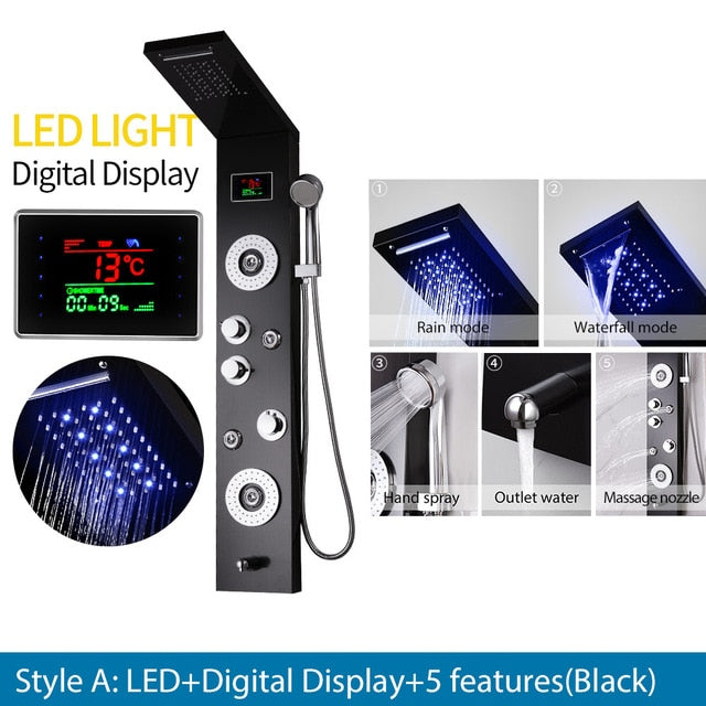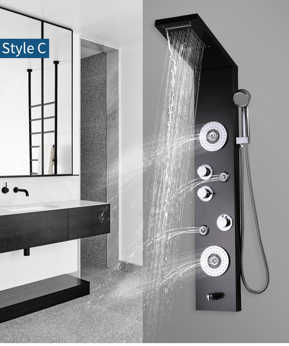 Förvandla ditt badrum till en spa-liknande tillflyktsort med denna eleganta och moderna duschpanel i rostfritt stål. Designad för både stil och funktionalitet, erbjuder denna panel en lyxig duschupplevelse med sina avancerade funktioner och eleganta design.