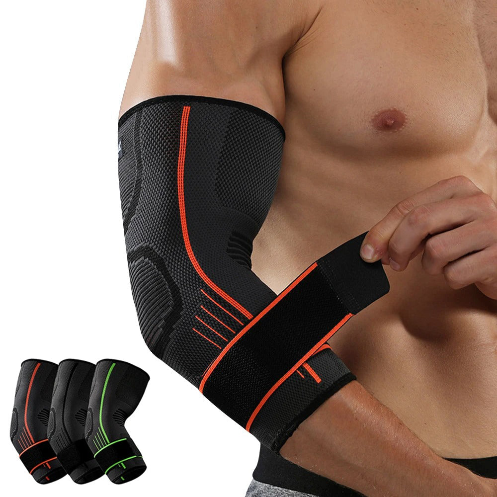 Vårt justerbara armbågsstöd är designat för att ge stabilitet, kompression och avlastning, vilket kan bidra till att minska obehag vid träning, arbete eller dagliga aktiviteter.
