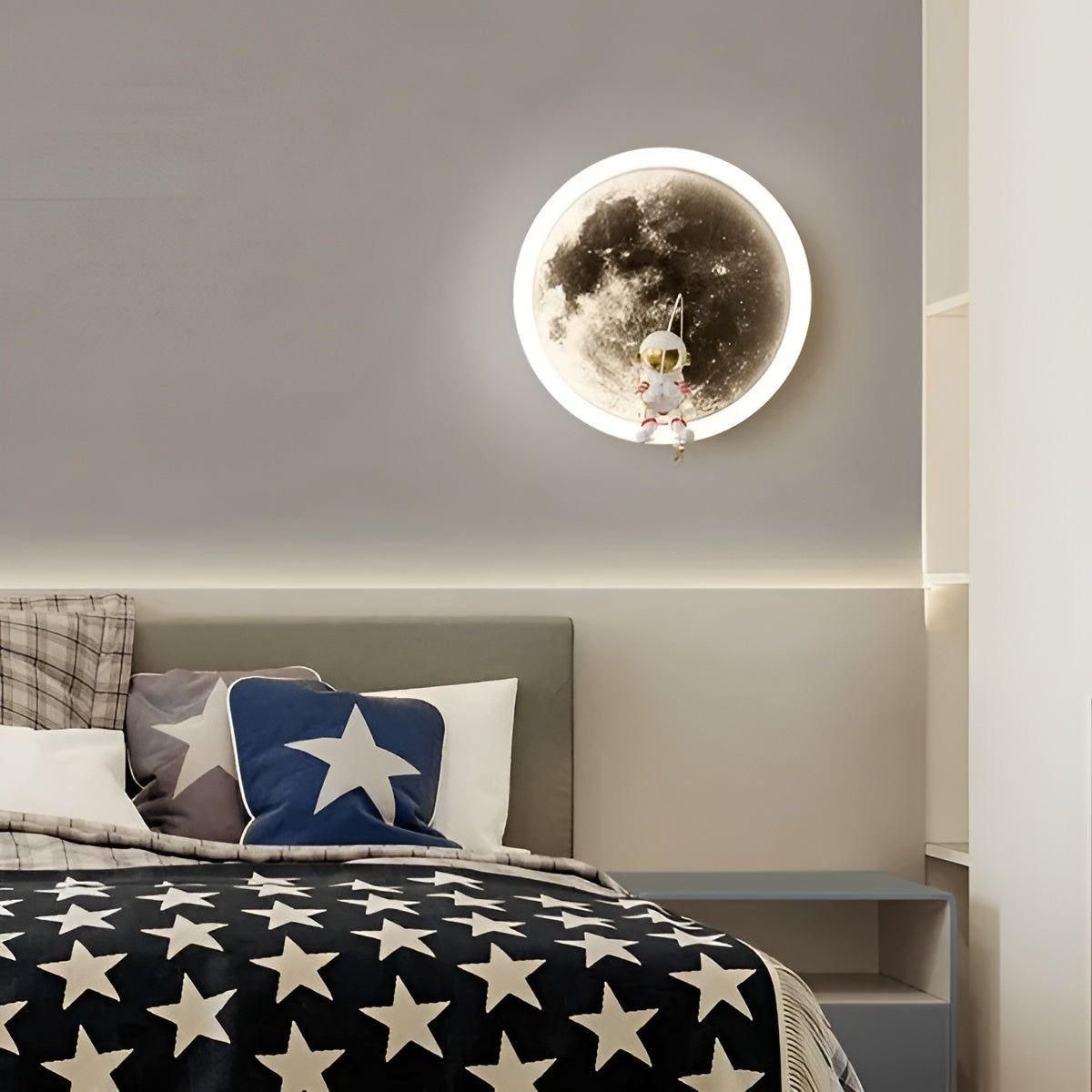 AstroGlow Ljus - Tecknad rymdman astronaut LED Rund måne vägglampa