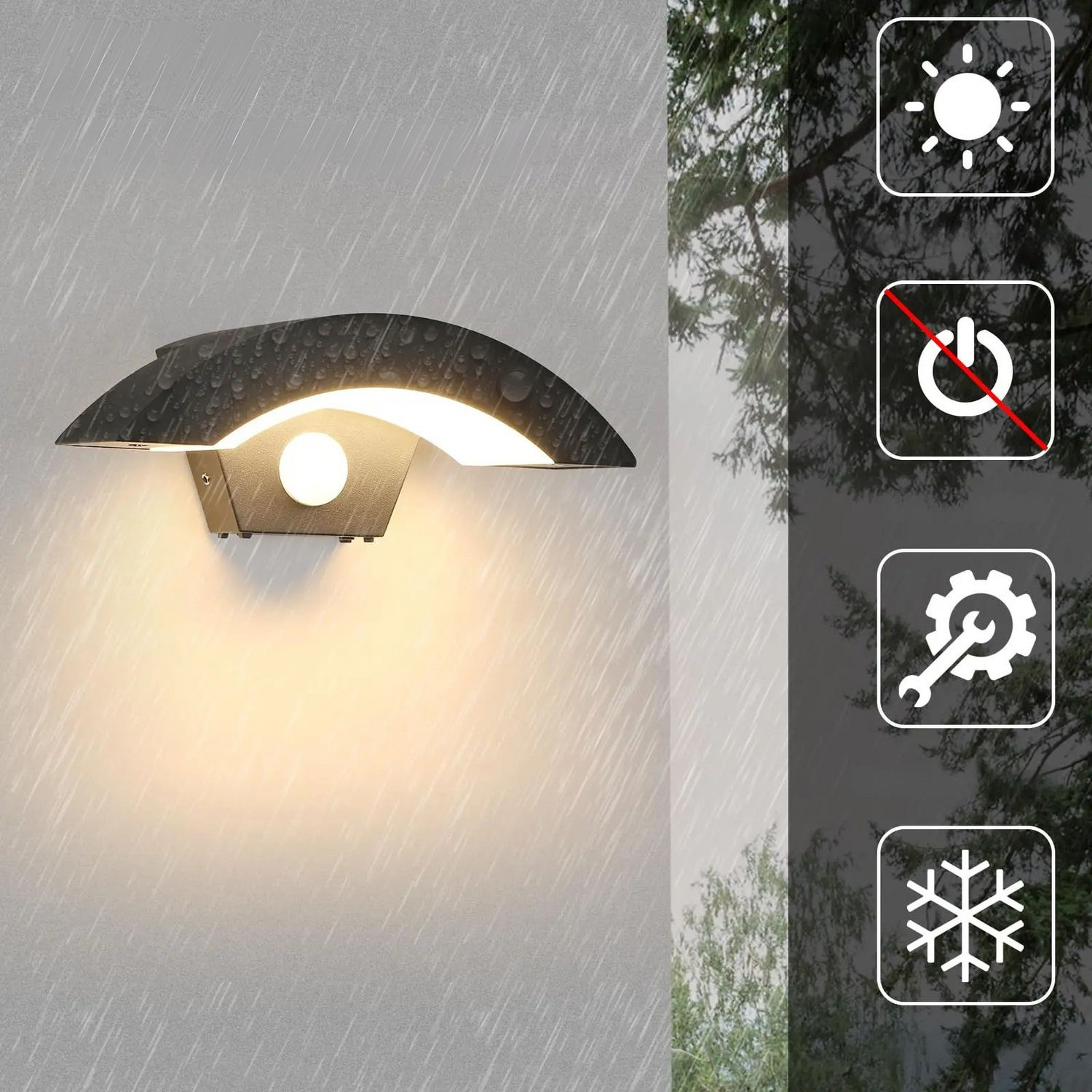 Utomhusvägglampor i 2-pack – Med rörelsesensor & skydd | För hus & trädgård
