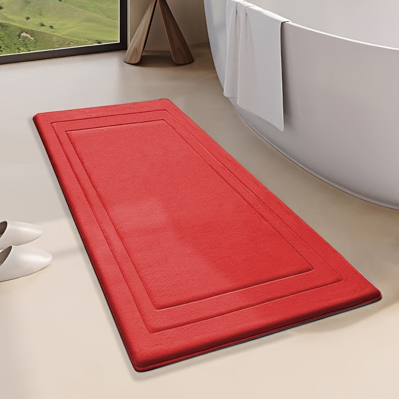 Uppgradera ditt badrum med denna minnesskum badmatta designad för mjuk komfort, fuktabsorbering och slip-säkerhet. Det polyesterblandade materialet erbjuder en pläd känsla under fötterna, medan det geometriska mönstret tillför modern stil. Idealisk för badrum, kök eller tvättstugor, denna maskinproducerade matta är både praktisk och elegant.