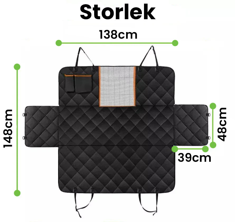 Välj mellan standardstorlek (130 x 140 cm) som täcker hela baksätet eller en mindre variant (100 x 50 cm) för dig som bara vill skydda en plats. Perfekt för både hundägare och barnfamiljer som vill bevara bilens skick, utan att kompromissa med komforten.