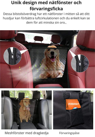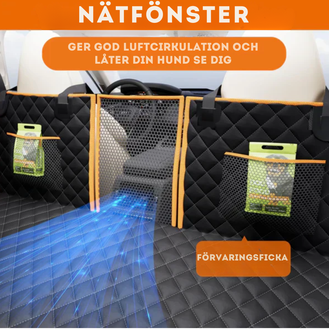 Den smarta hängmattedesignen fångar upp hår, smuts och grus innan det når bilens säten eller golv. Ett nätfönster framtill gör att hunden kan se framåt – något som ger extra trygghet under resan. Skyddet kan användas både på baksätet och i bagageutrymmet, vilket gör det flexibelt beroende på hur du reser. En praktisk lösning för både vardag och äventyr.