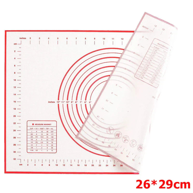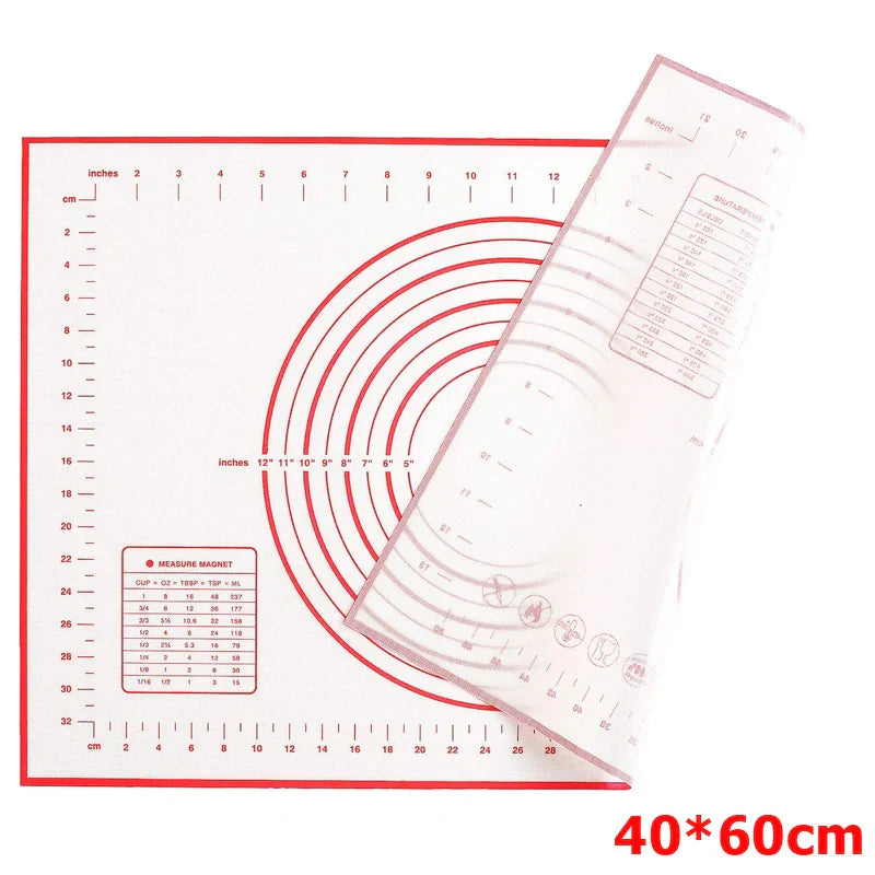 Baka som en professionell med BakeFlex™ Silikonbakmatta – din oumbärliga hjälpare för deg, fondant och mer. Denna extra tjocka och halkfria matta erbjuder en rymlig arbetsyta med inbyggda måttangivelser, så att du alltid får den perfekta skärningen. Ingen klibbighet, ingen glidning – bara rent och effektivt arbete!