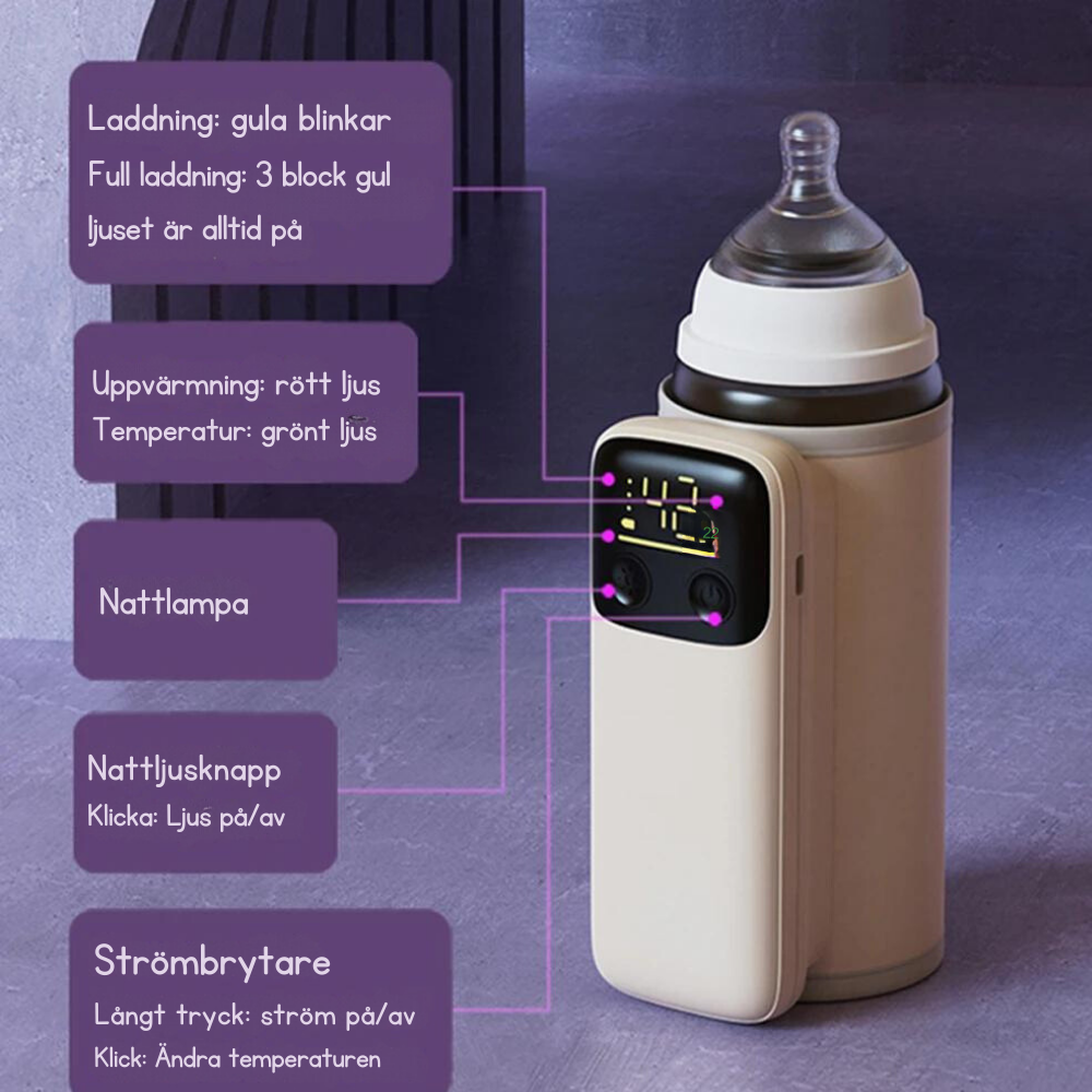 Tänk dig följande: Du är i parken med ditt barn, njuter av kvalitetstid tillsammans. Plötsligt blir barnet hungrigt, och du behöver värma en flaska snabbt. Istället för att frenetiskt leta efter en mikrovågsugn eller koka vatten, tar du bara upp denna räddare i nöden ur din väska. Med bara ett knapptryck börjar den värma ditt barns flaska till perfekt temperatur, utan krångel, utan stress.