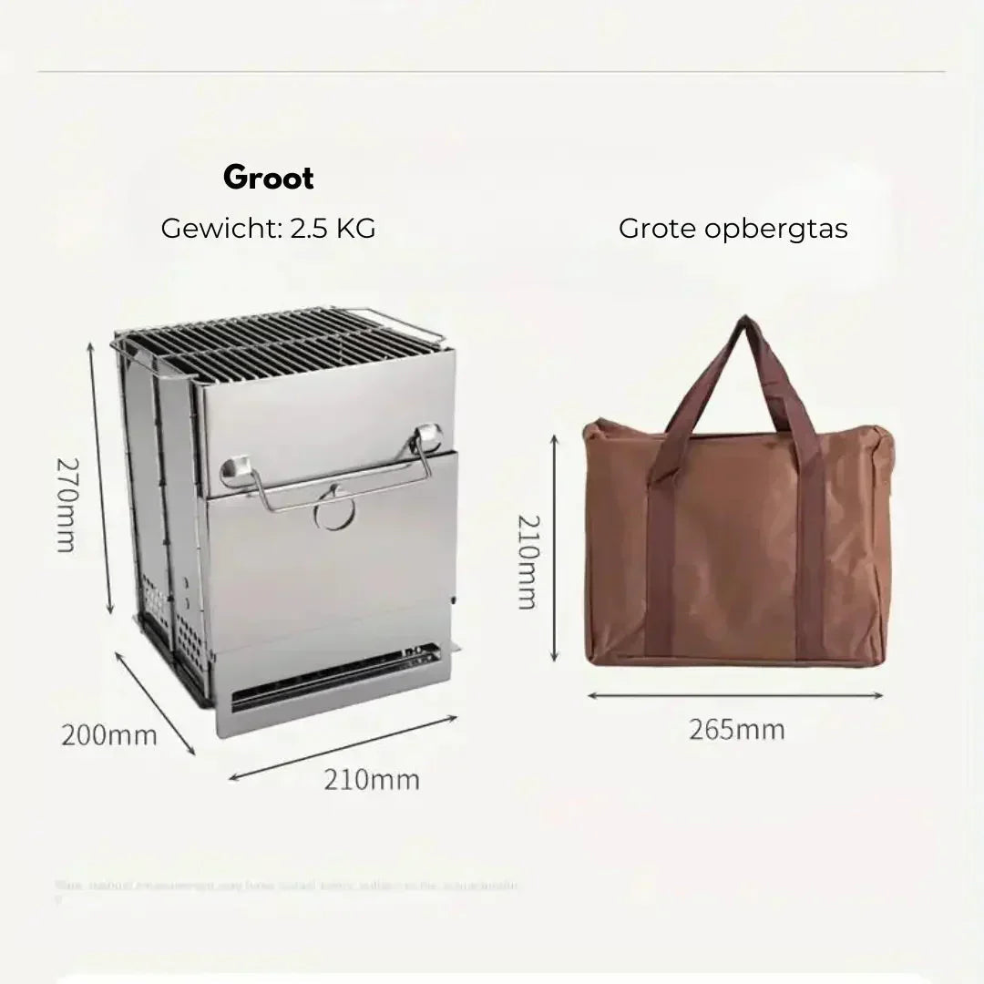Bärbar hopfällbar campingkök i rostfritt stål – Lätt vedeldad utomhuskök