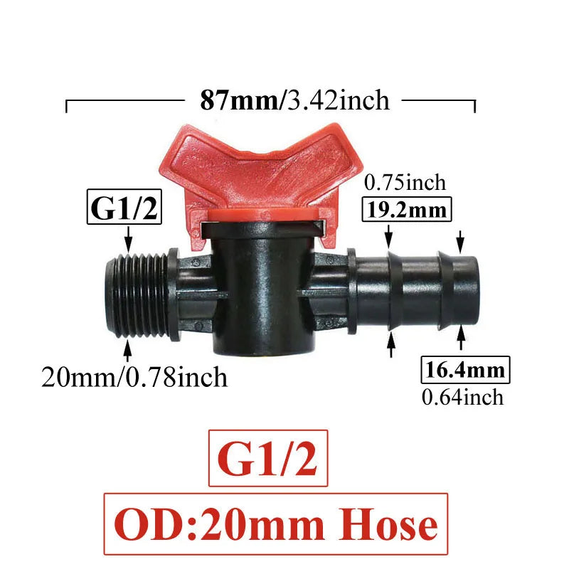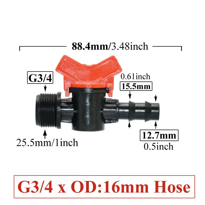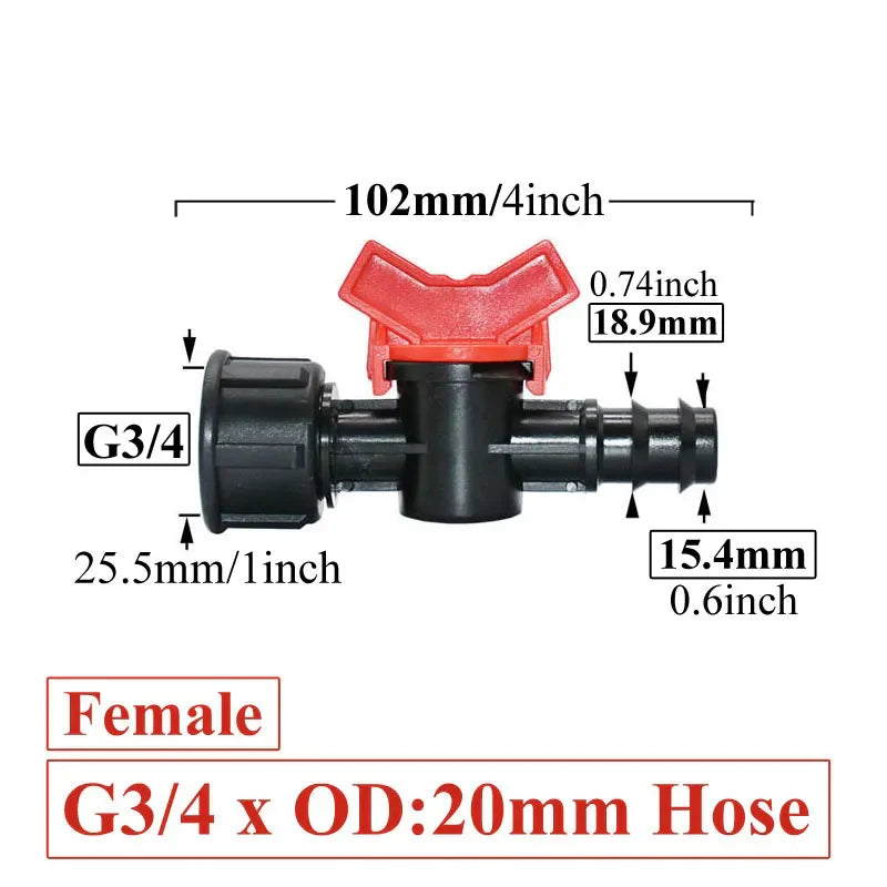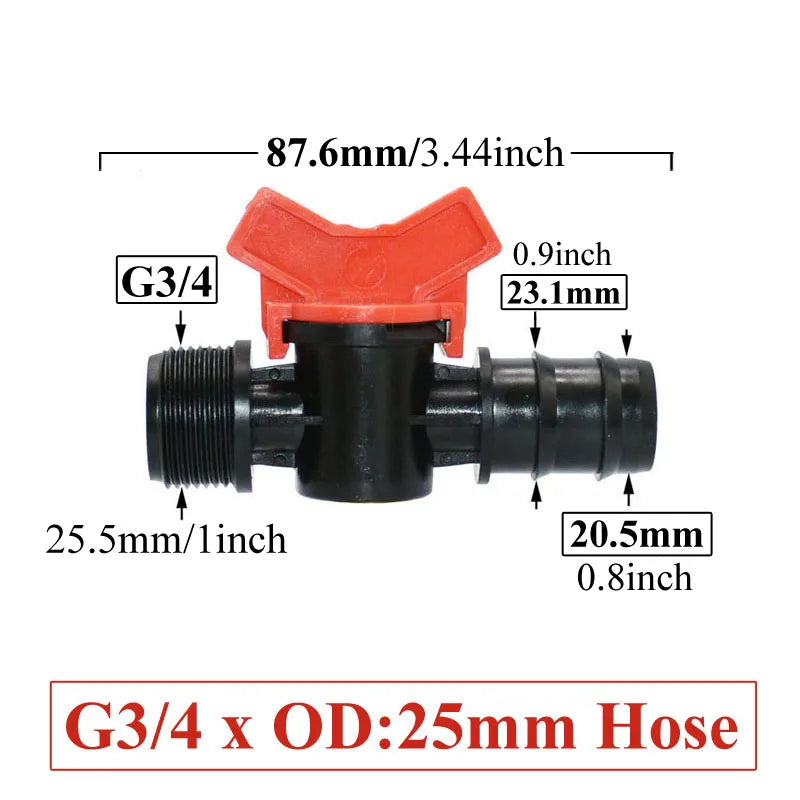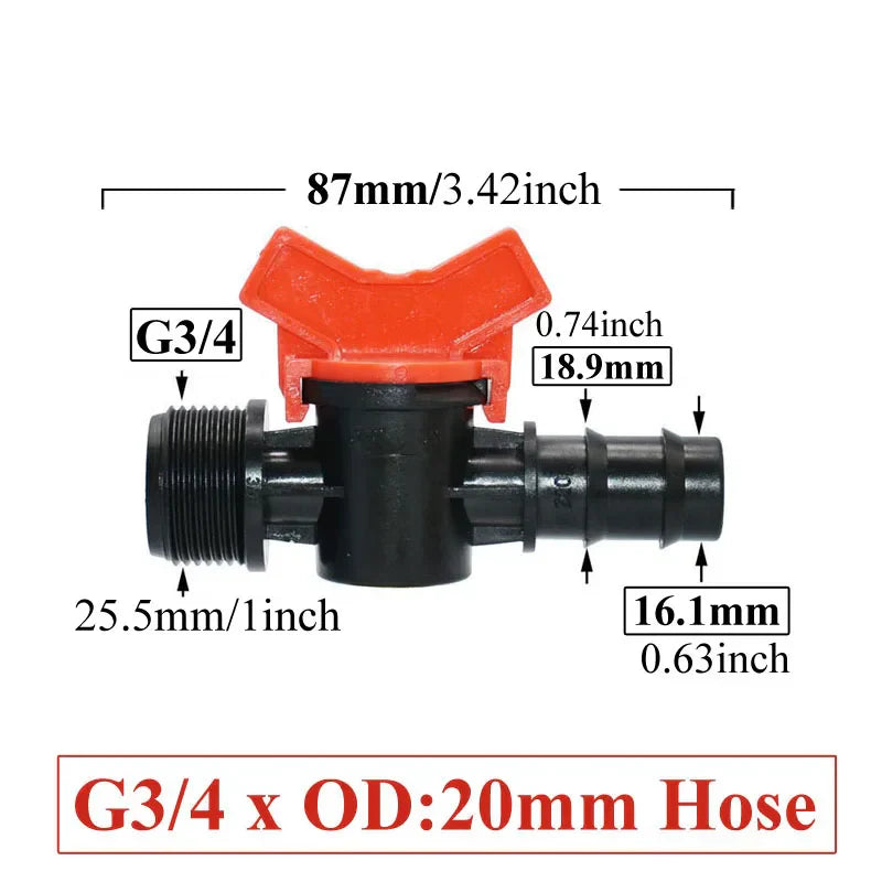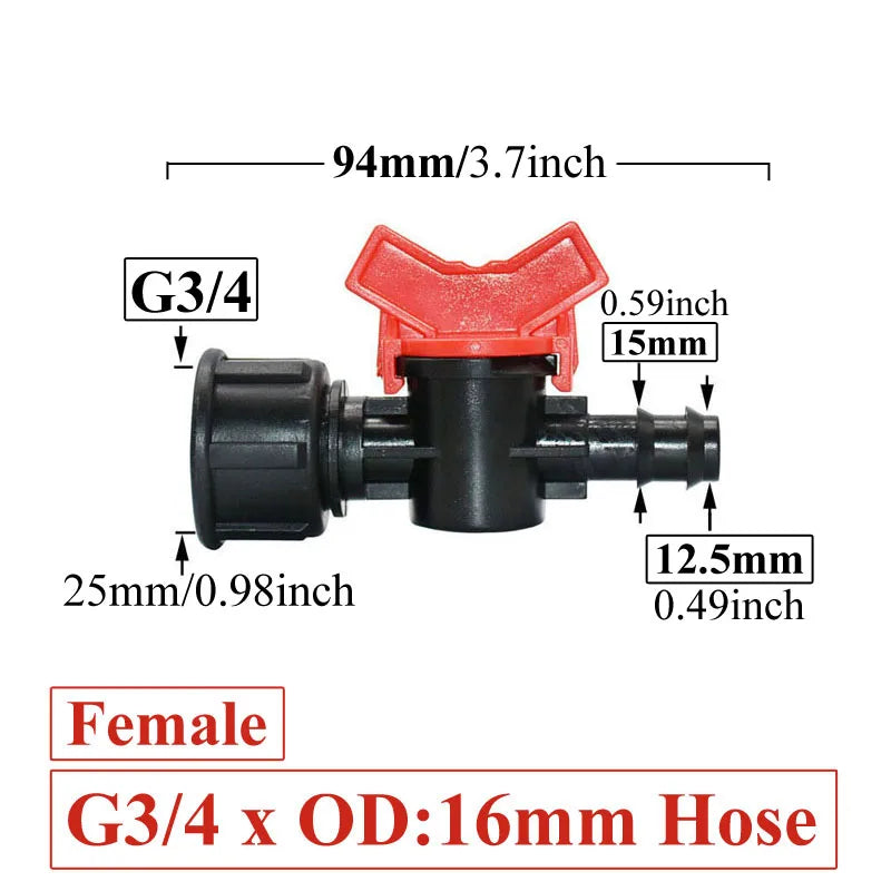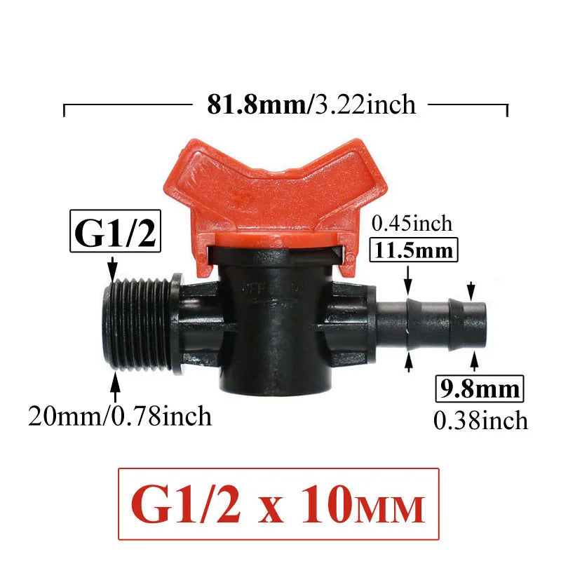 – Gänga: G1/2", G3/4" - Användning: Trädgårdsbevattning, droppbevattning, PE-rörsystem, mikrodroppsystem, jordbruk, biltvättsystem