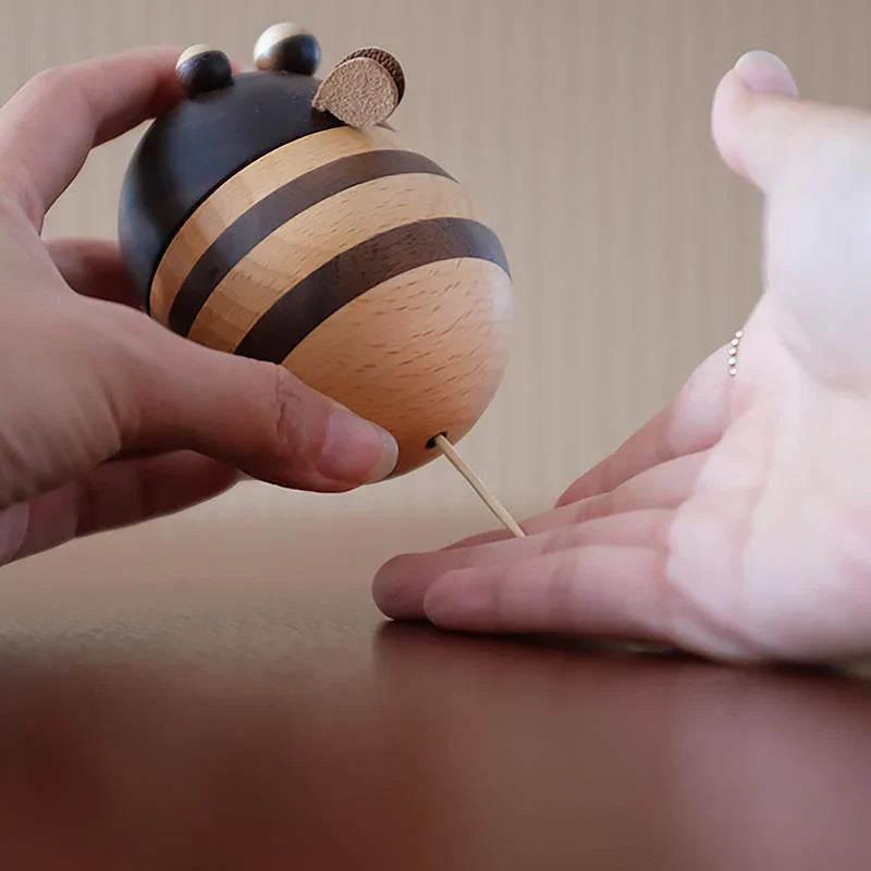 Denna handgjorda tandpetarhållare är mer än bara funktionell – den är en dekoration i sig! Tillverkad av äkta valnöt och ek, har denna hållare formen av ett sött bi som sprider glädje i varje rum. Perfekt för middagsbjudningar eller som en unik gåva. Förvara dina tandpetare på ett stilfullt och lekfullt sätt med denna exklusiva design.