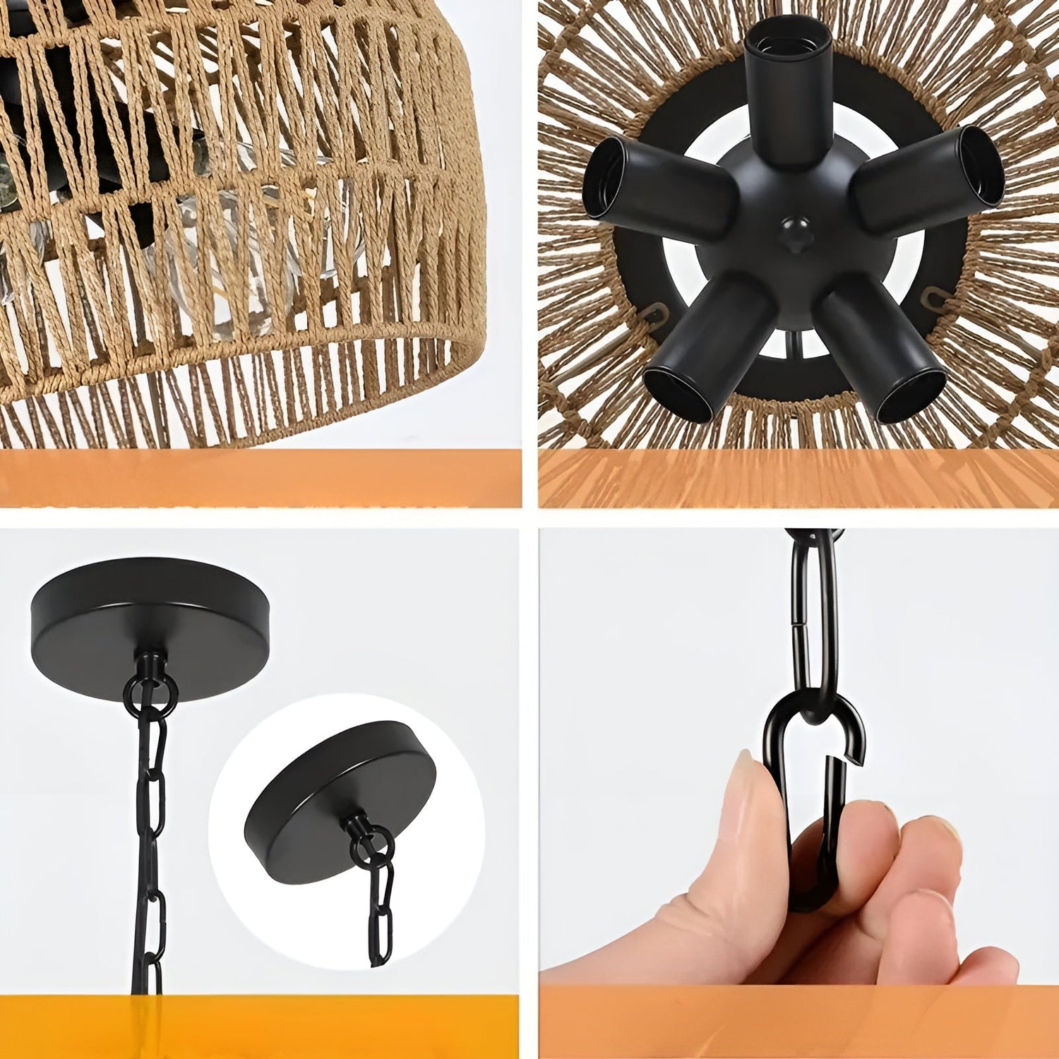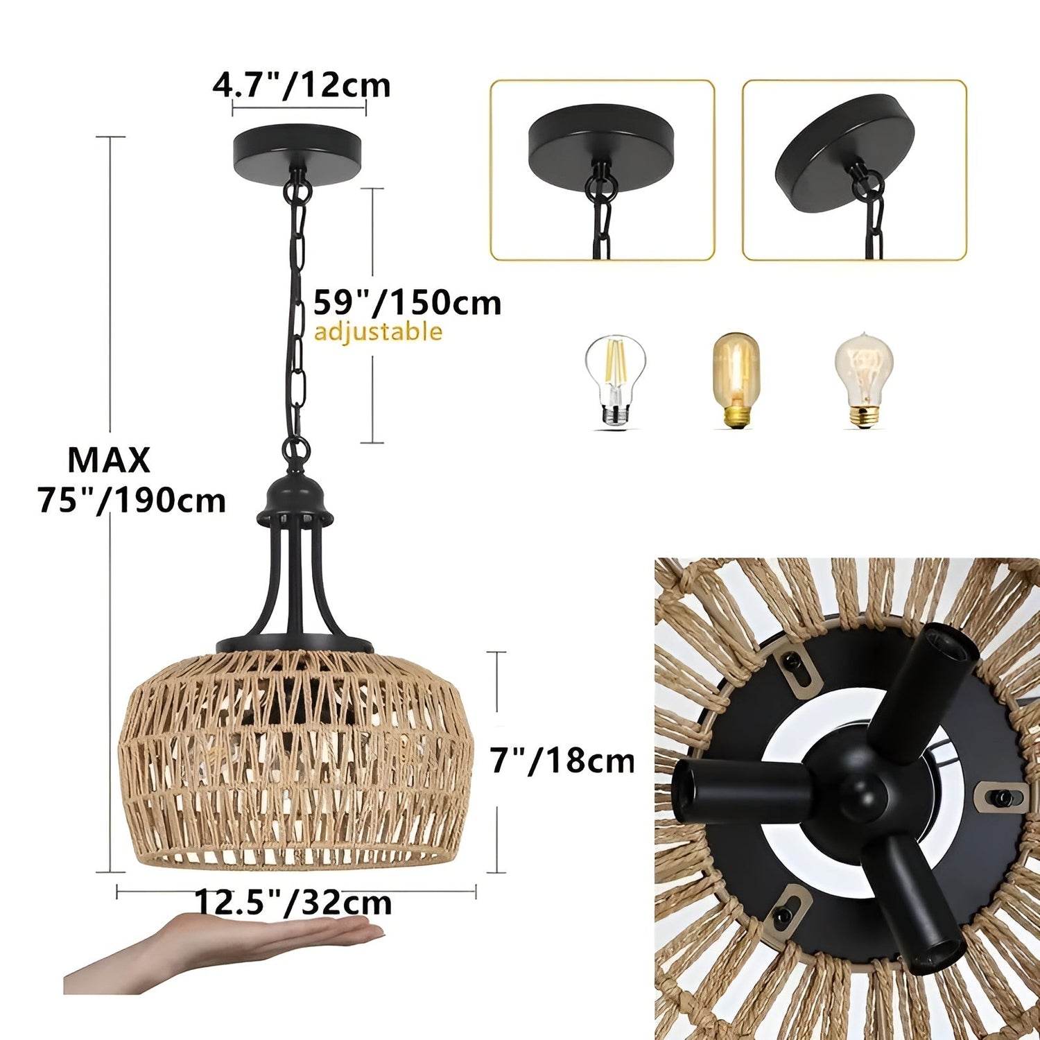 Denna Boho-Chic Rattan Hänglampa med 3 ljuskällor förenar rustik charm med modern design perfekt för att ge ditt matrum, köksö eller vardagsrum en inbjudande atmosfär. Det handflätade rattanväv ger ett mjukt, varmt ljusspel och skapar en harmonisk kontrast till enkla väggar eller moderna möbler.